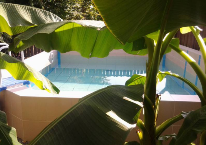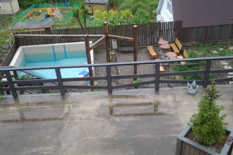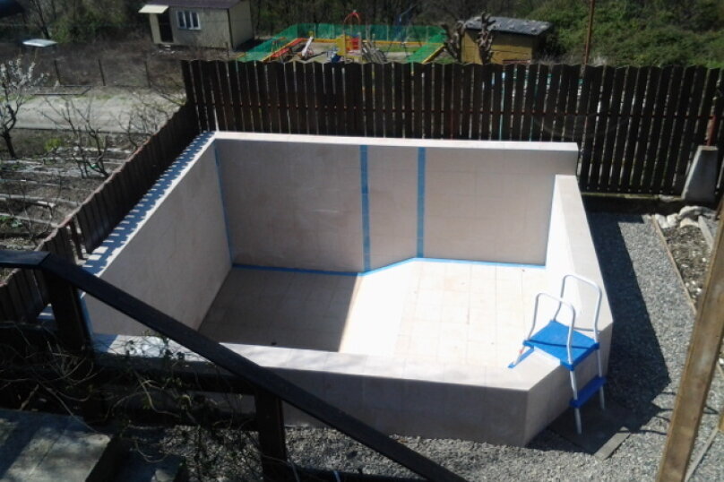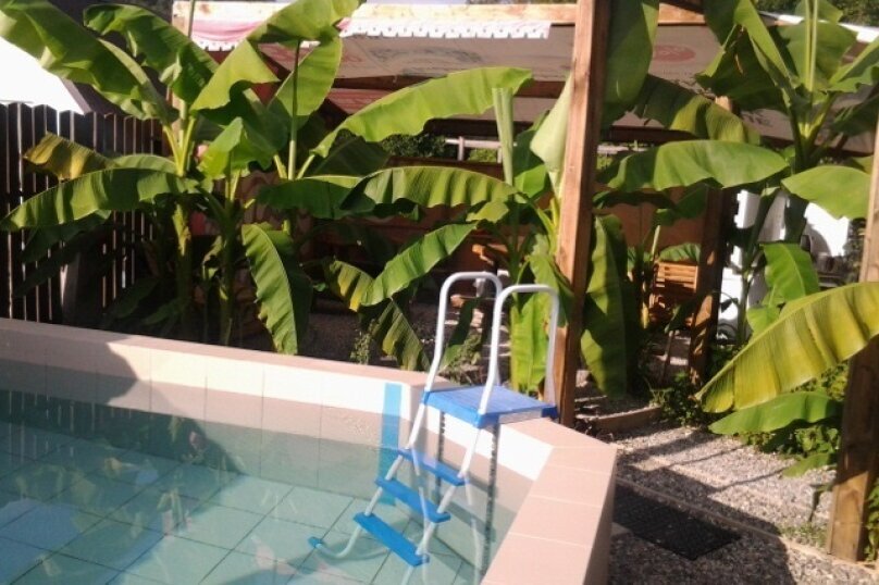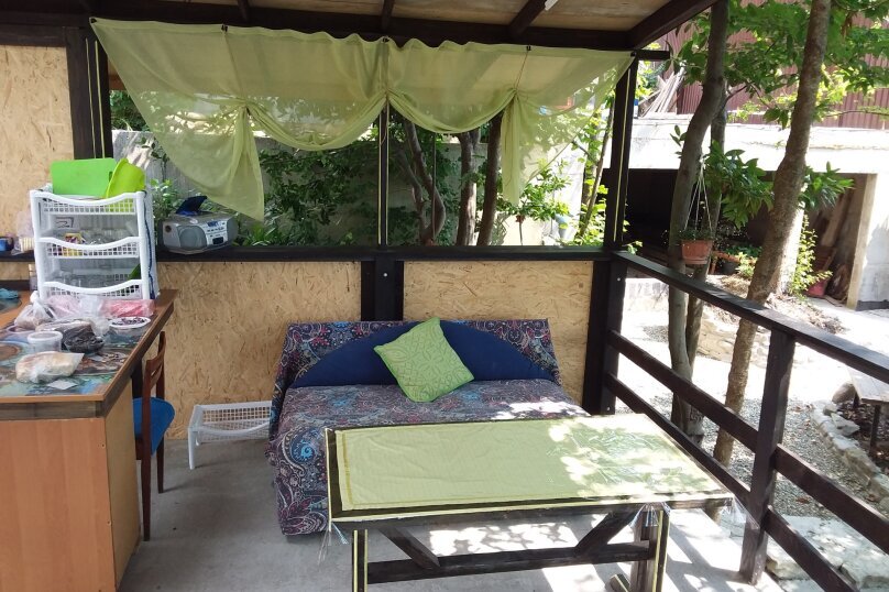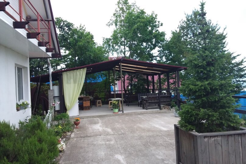 На территории гостевого дома зеленый двор, просторная беседка, где всегда прохладно и ветерок, с диванами, столами, лавочками. Под сенью деревьев спрятались деревянные скамейки. Бассейн работает только в светлое время суток. На общей кухонной площадке гости могут воспользоваться холодильником, чайником, СВЧ-печью, плитой. Есть наборы посуды для приготовления пищи. На территории есть мангальная зона.