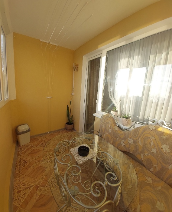 Лоджия застеклена. Из окна открывается вид на море и Крымский мост. Квартира полностью укомплектована необходимой мебелью и бытовой техникой (плазменный телевизор, холодильник, микроволновая печь, стиральная машина - автомат, кондиционер), горячая/холодная вода круглосуточно, посуда, постельной белье и принадлежности. Интернет. Есть все для Вашего комфортного проживания. Все новое.