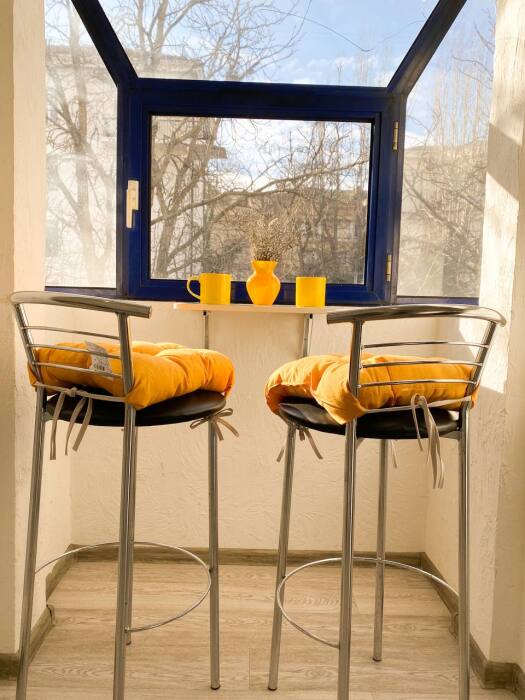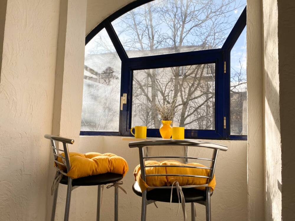 4. Изюминкой квартиры является большой балкон, где уютно встретить рассвет и проводить закат с видом на главную улицу города. Вид на вечерний город воистину потрясающий. Когда включается иллюминация и подсветка, получается особая магия Севастополя.