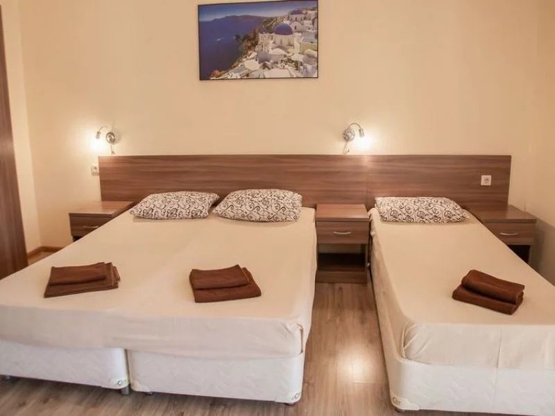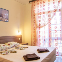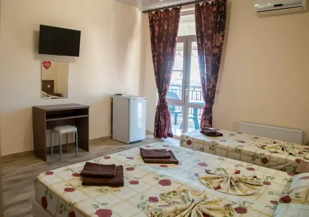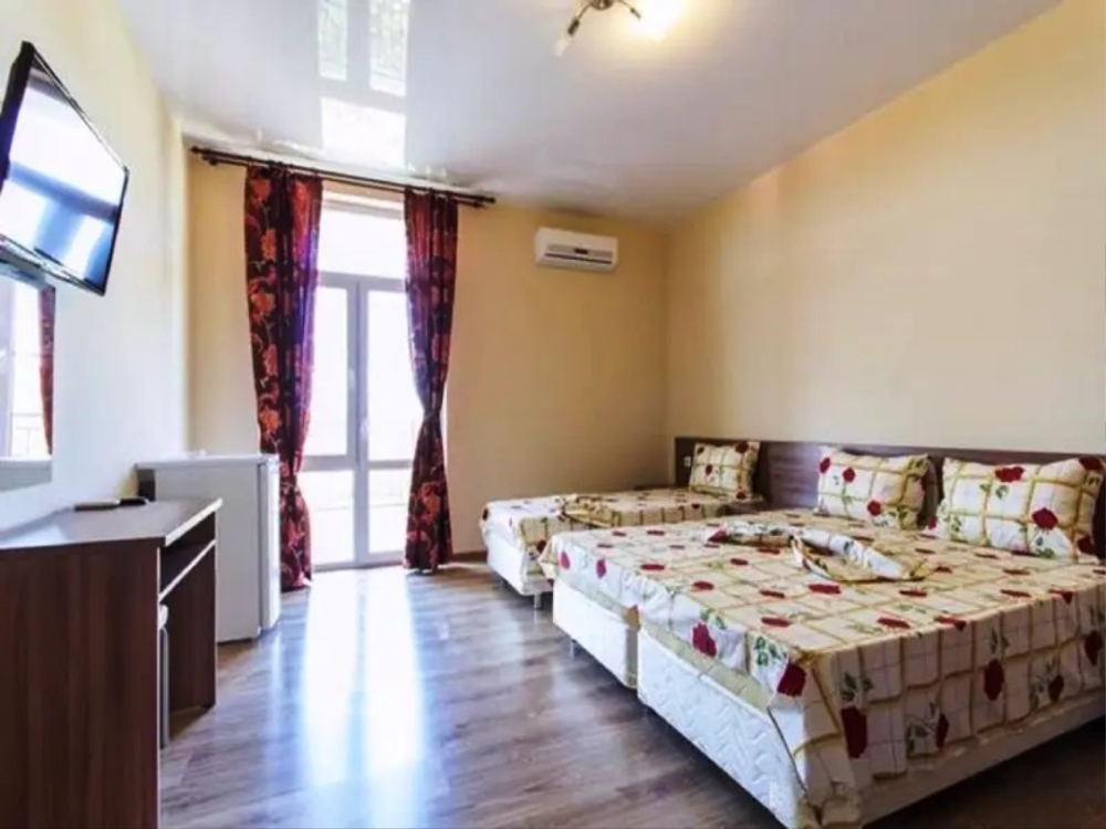 Удобства: В распоряжении гостей - вся необходимая техника: холодильник, телевизор, кондиционер. В номере есть собственный санузел с душем и туалетом. Наличие балкона уточняйте при бронировании.