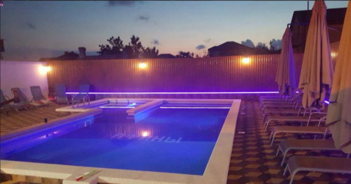 - Просторный стационарный подогреваемый бассейн с гейзерами, ночной подсветкой и отдельной зоной джакузи для детей;