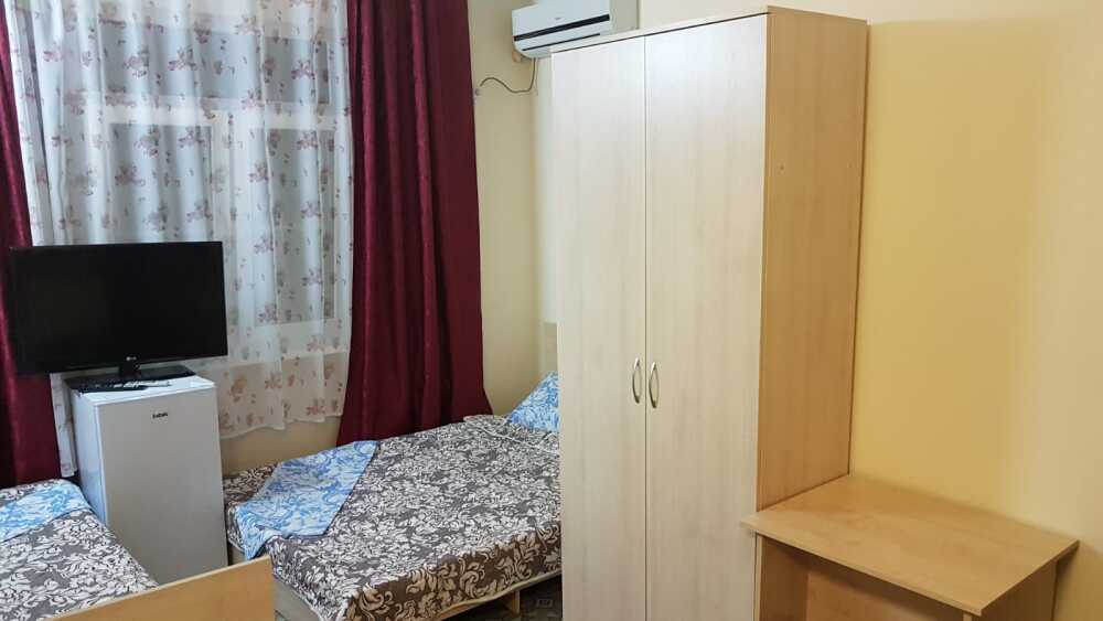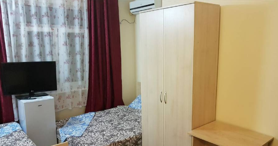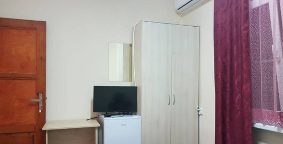 Для гостей уютные номера с кондиционером, холодильником, телевизором и Wi-Fi, кухня для самостоятельного приготовления пищи. Есть номера с кухней в номере.