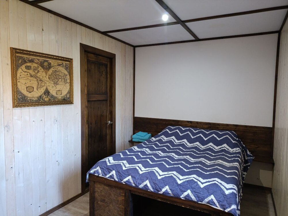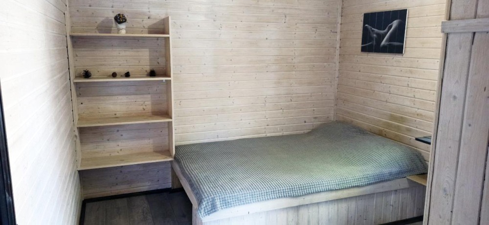 Двуспальная кровать, стилизованная под лодку; холодильник, WI-FI, зеркало, скамья, передвижной стол, компьютерный столик, деревянное кресло. Термодом, сохраняющий комфортную температуру; электрическое отопление (тёплый пол),кондиционер.