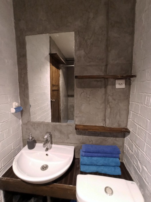 Все комнаты с отдельными санузлами: душ, туалет, горячая вода (бойлер). Три комнаты с двуспальной кроватью, в одной - три односпальные кровати. Во всех комнатах холодильник, WI-FI, шкаф, зеркало, тёплый пол, кондиционеры, свежий современный ремонт в минималистическом стиле. Отдельный флигель с двумя спальнями (две двуспальные и одна односпальная кровати), со своей кухней и санузлом (душ и туалет)