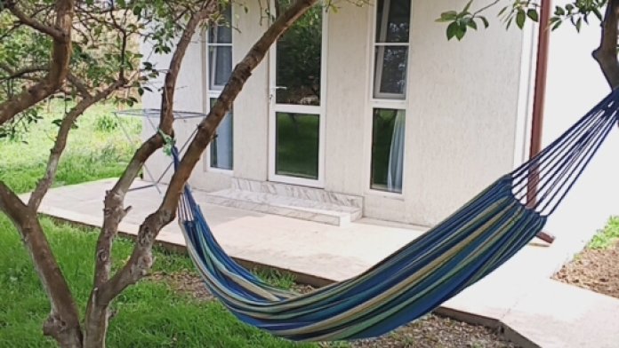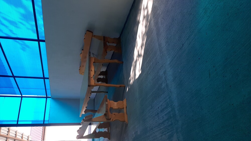 У нас просторный двор, большой, зелёный сад и прекрасный вид на горы.
