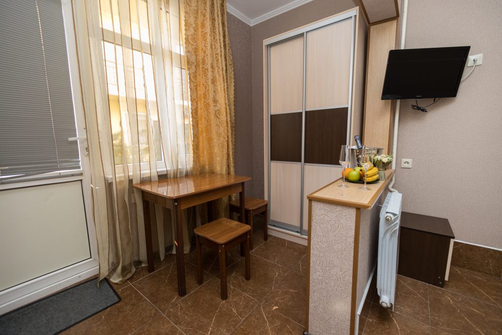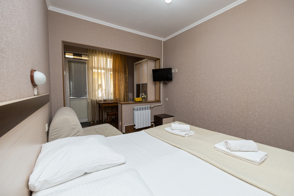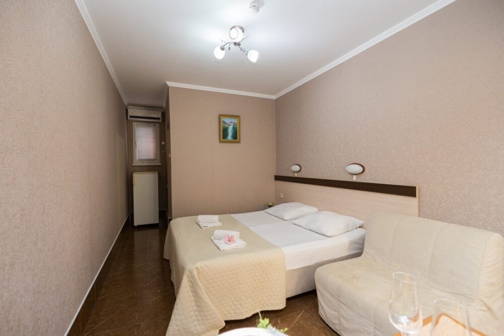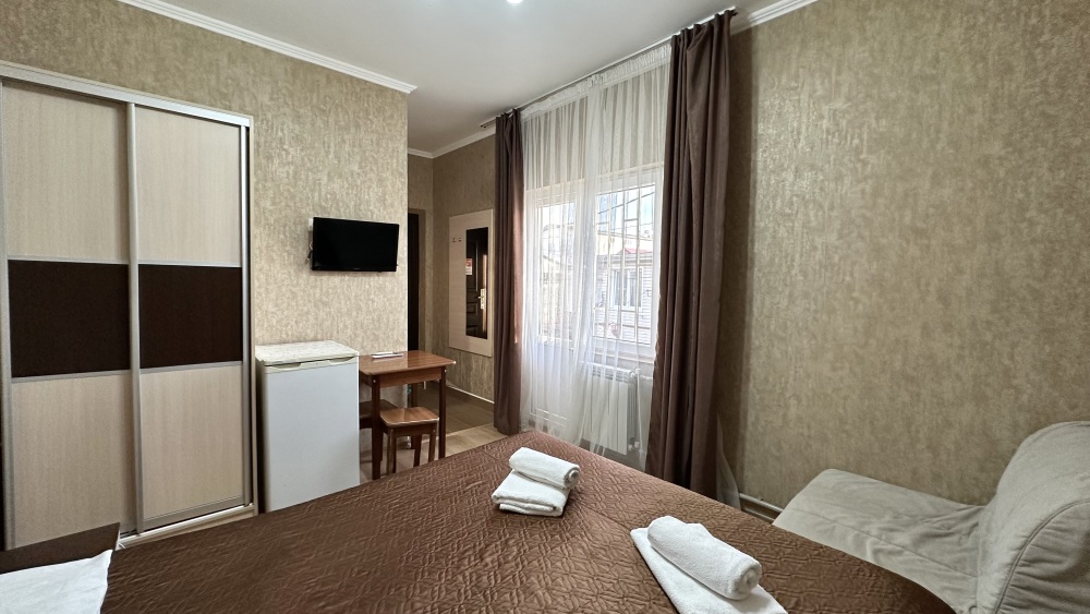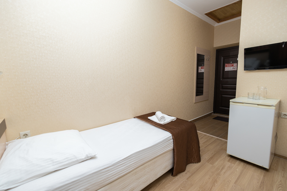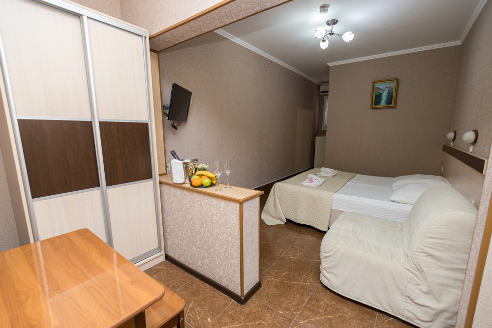 Однокомнатные номера, оборудованные всей необходимой мебелью и техникой – тв, кондиционер, холодильник.