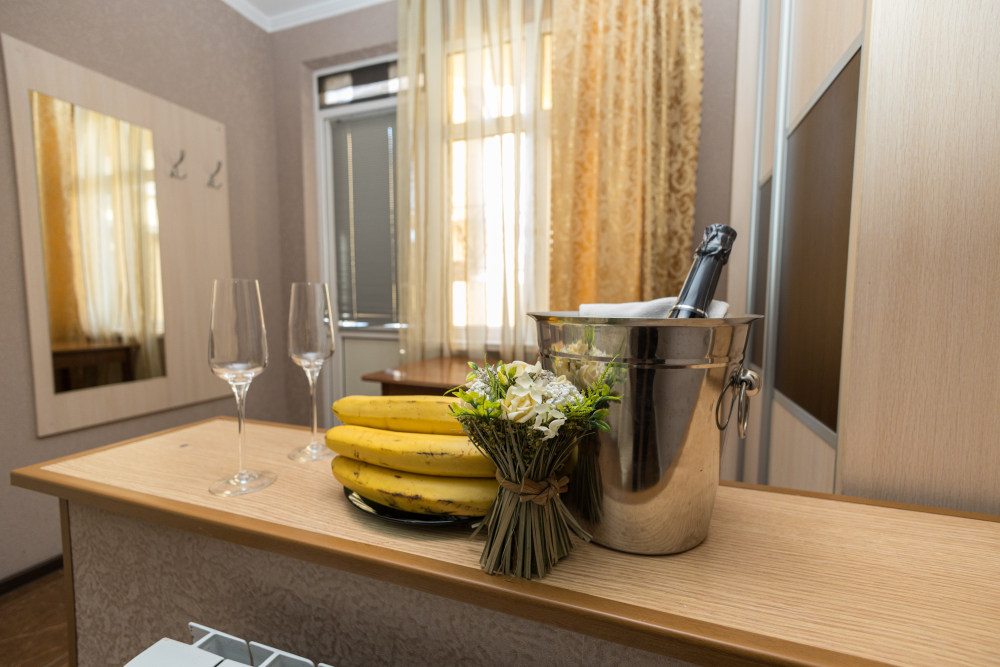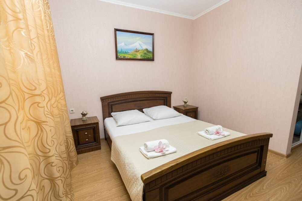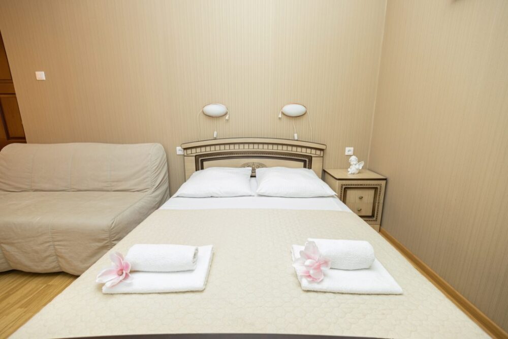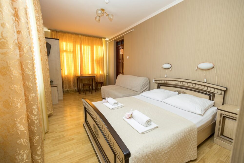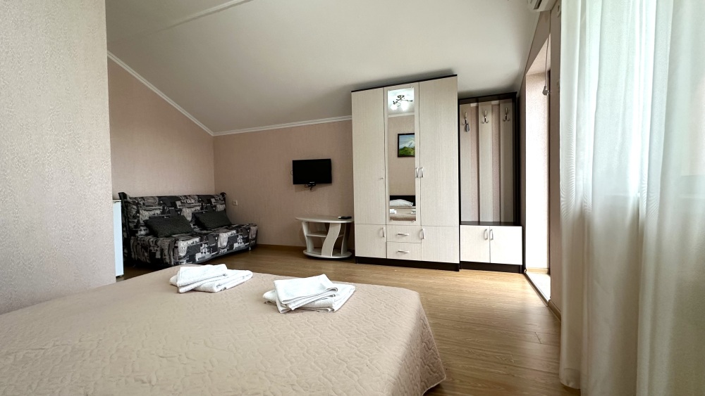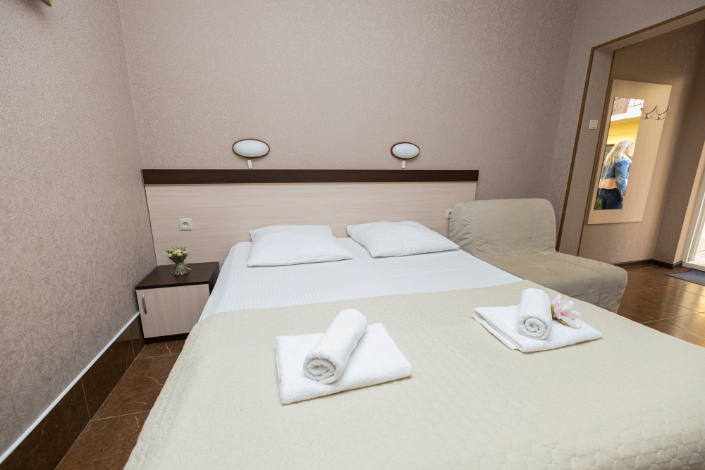 Однокомнатные номера, оборудованные всей необходимой мебелью и техникой – тв, кондиционер, холодильник.