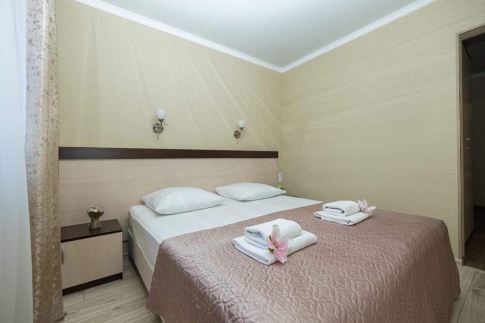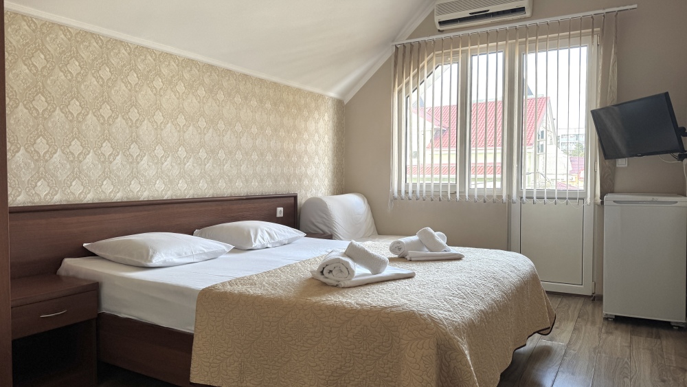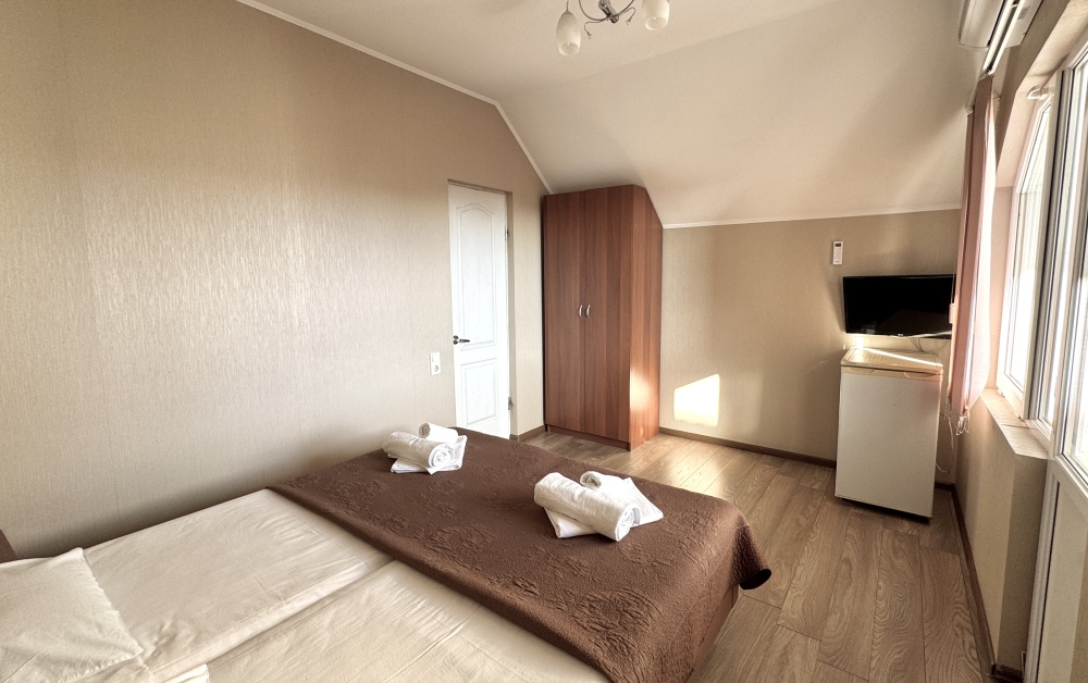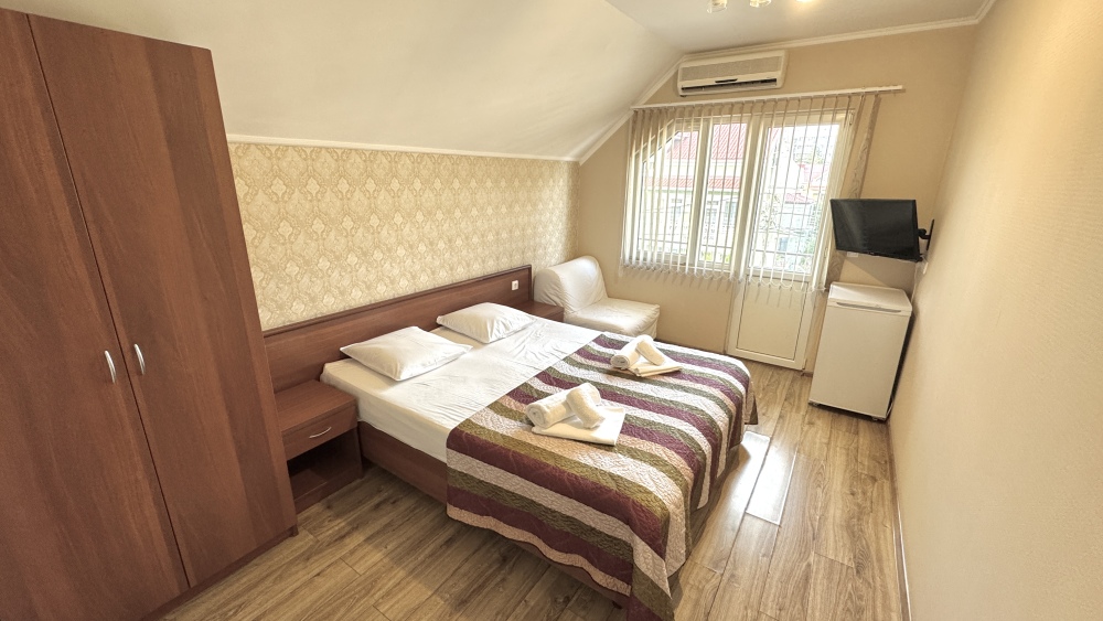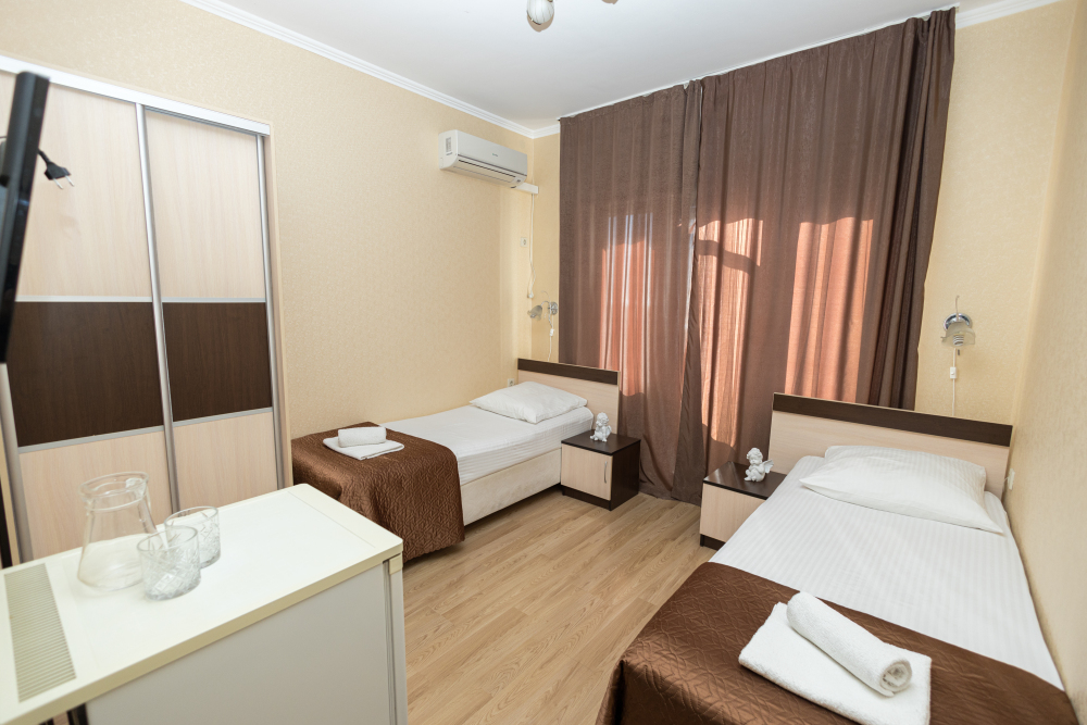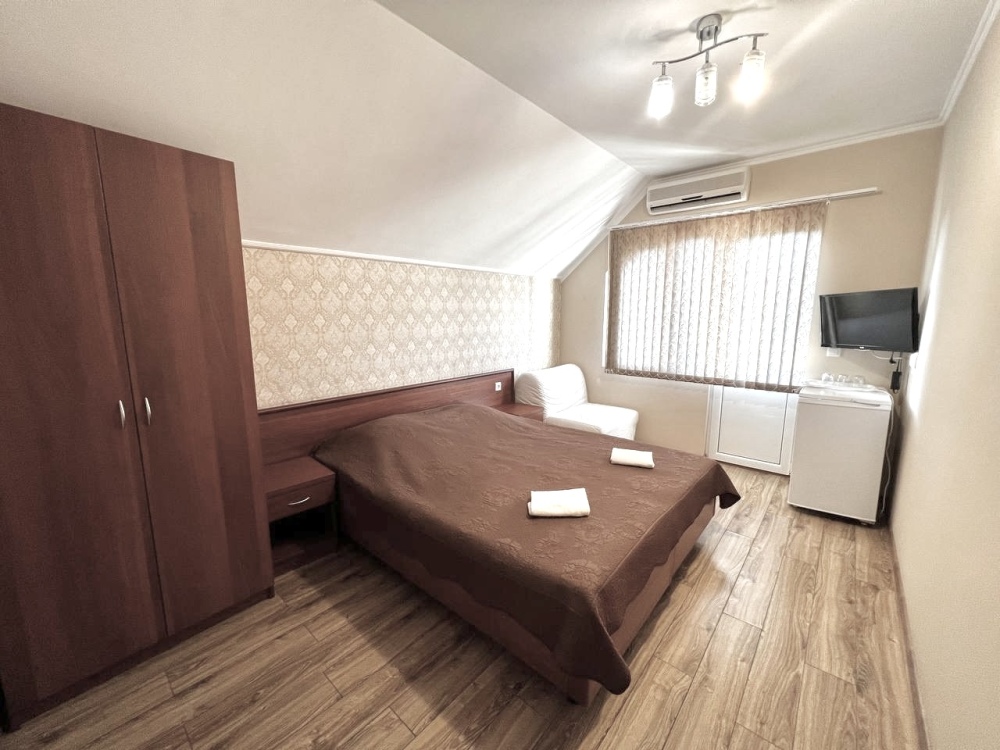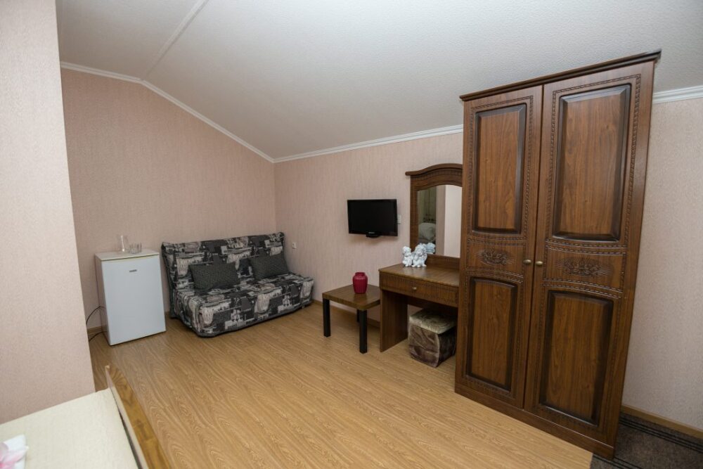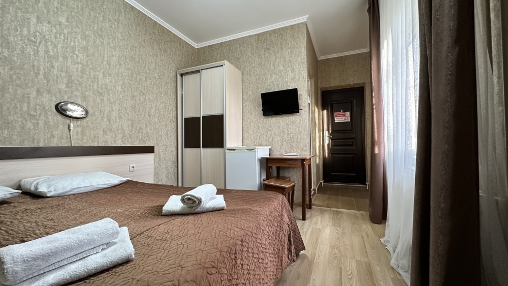 Уютные номера, оборудованные всей необходимой мебелью и техникой – тв, холодильник, кондиционер.