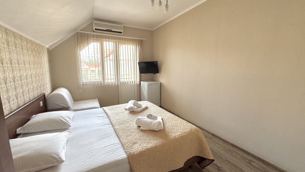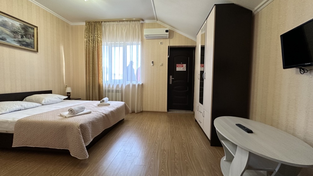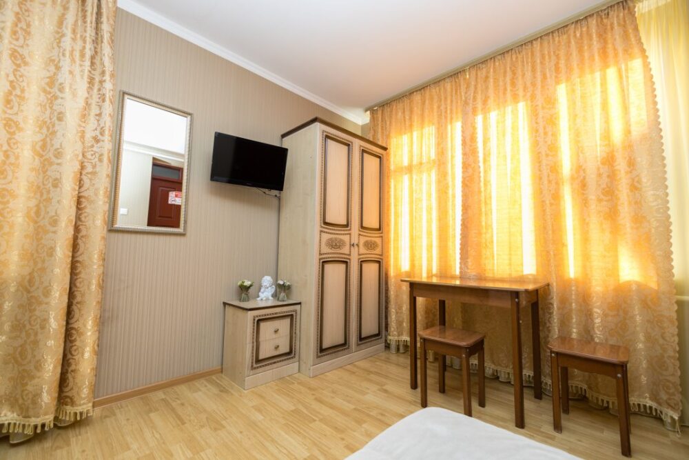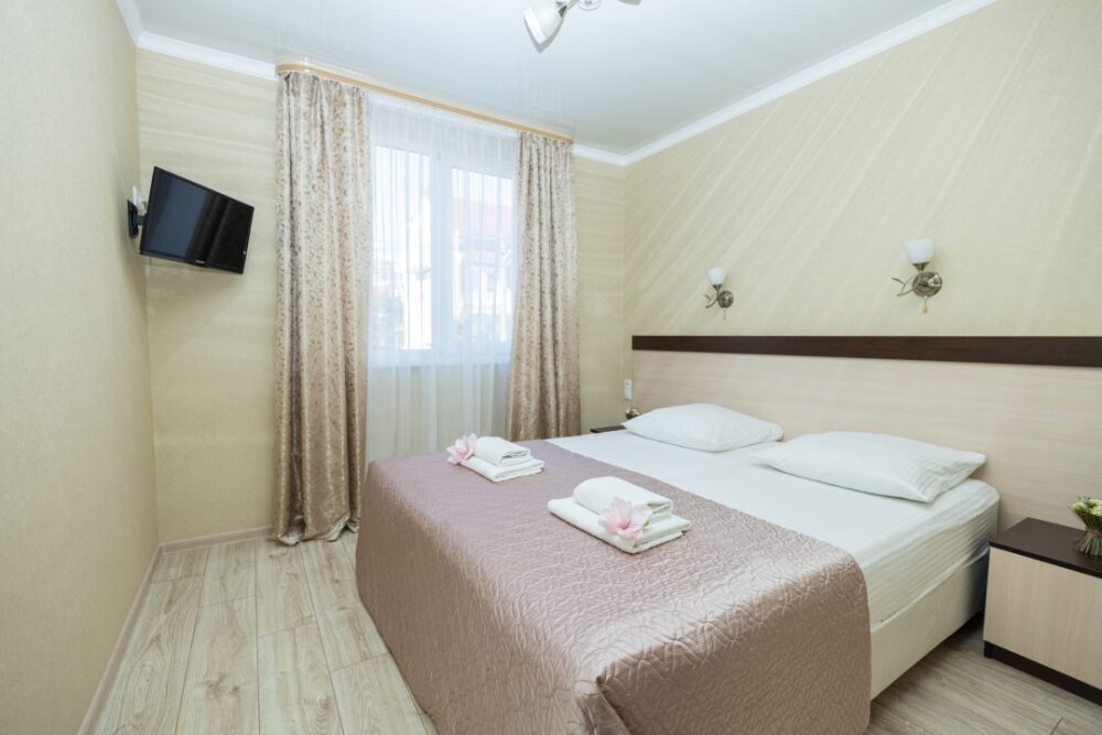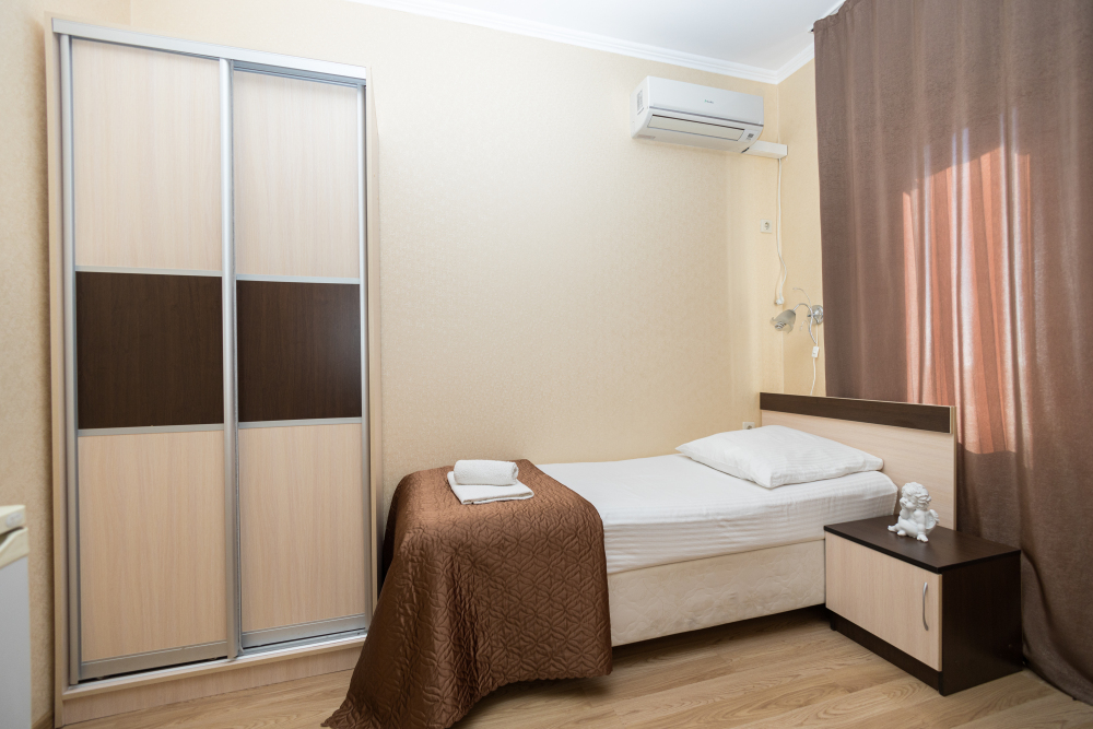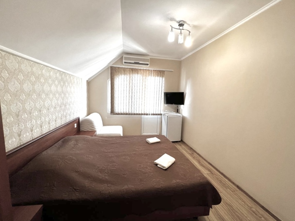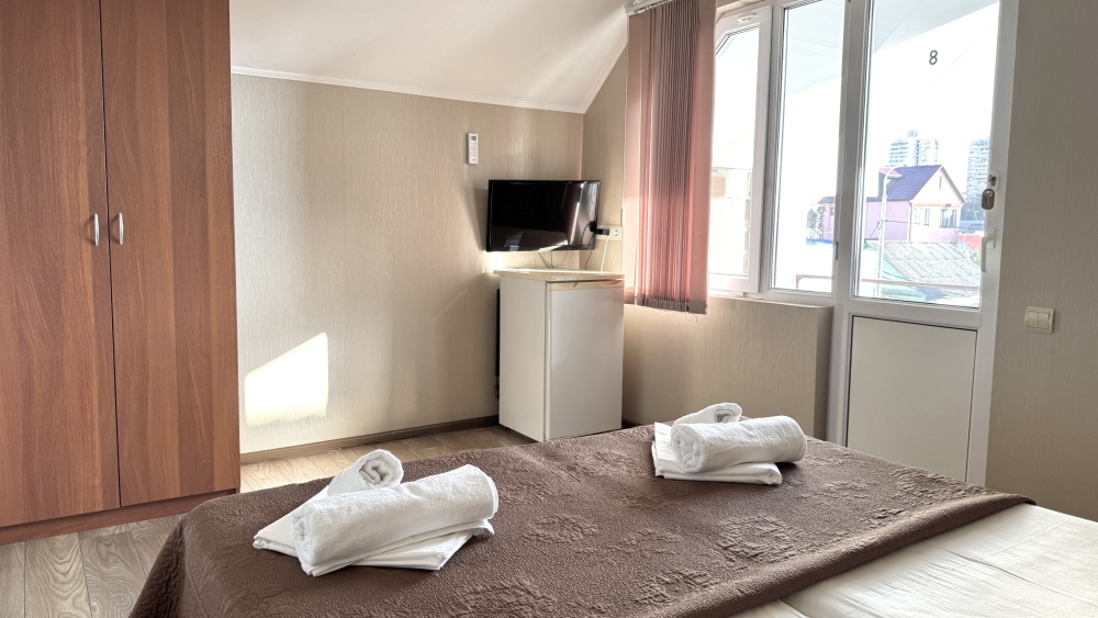 Уютные номера, оборудованные всей необходимой мебелью и техникой – тв, холодильник, кондиционер.