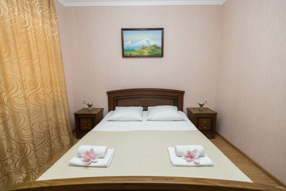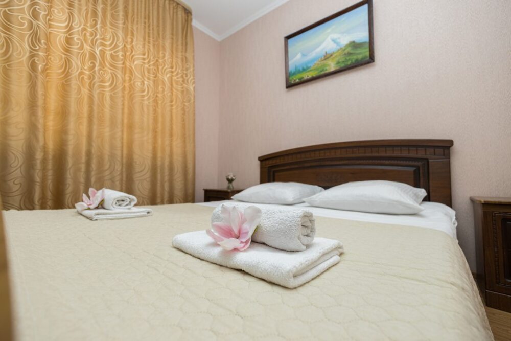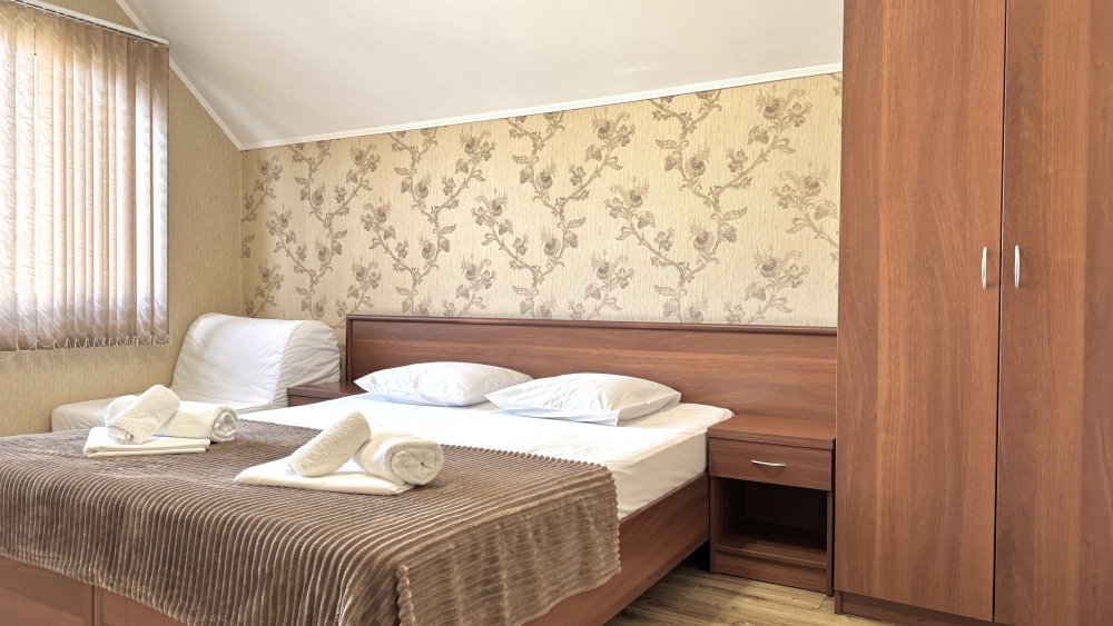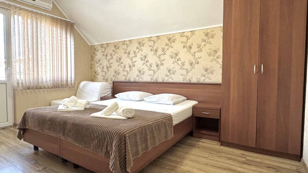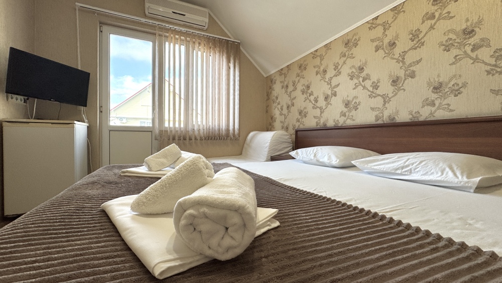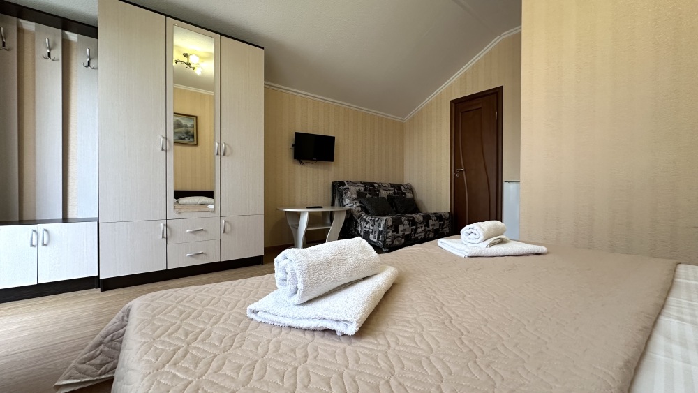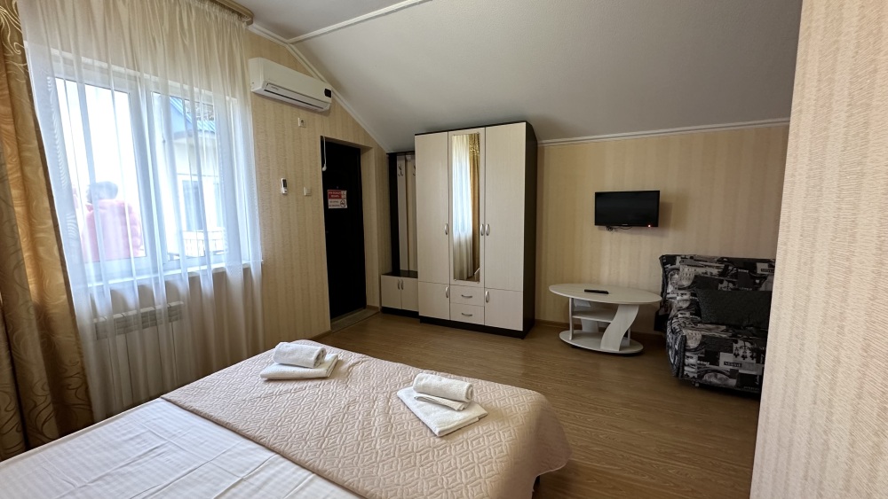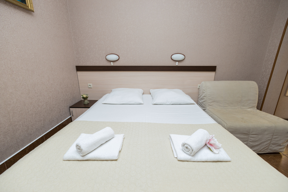 Уютные номера, оборудованные всей необходимой мебелью и техникой – тв, холодильник, кондиционер.