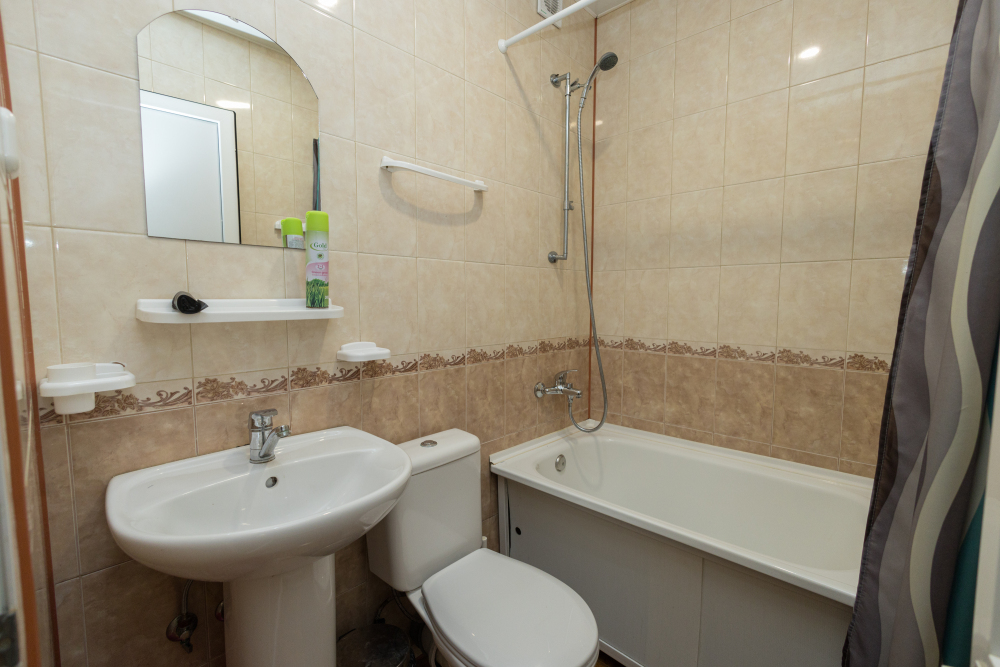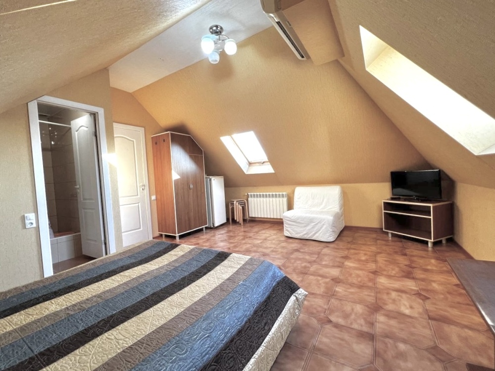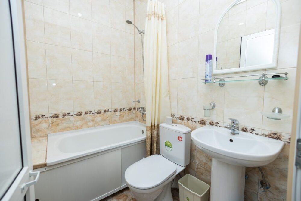 Номера оборудованы всей необходимой мебелью и техникой – тв, холодильник, кондиционер. Ванная комната в номере.