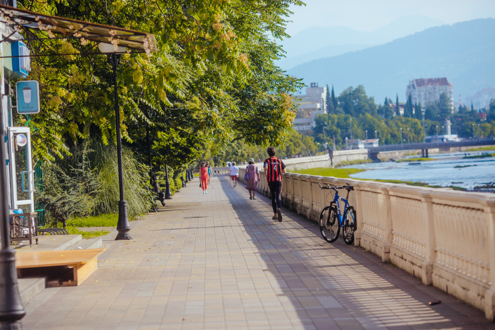 Отель располагается на живописной пешеходной набережной реки Сочи в 300 метрах от лучшего морского пляжа Ривьера. Сам парк Ривьера находится через дорогу буквально в 20 метрах. Из огромных панорамных окон отеля открывается прекрасный вид на горную реку, тенистую платановую аллею и горы. Нашим гостям не приходится скучать, ведь в пешей доступности от отеля множество развлечений, магазинов, ресторанов, кафе, баров и клубов.