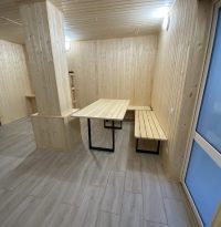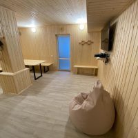 Забронировать баню можно от 2 часов. Рассчитана на 6-8 человек. Просторный предбанник со столом, пуфиками, диваном. Для гостей предусмотрена вода, чаи, посуда, полотенца - все необходимое для Вашего отдыха.