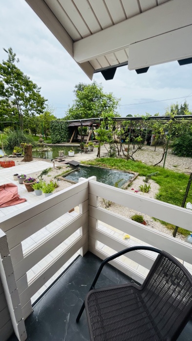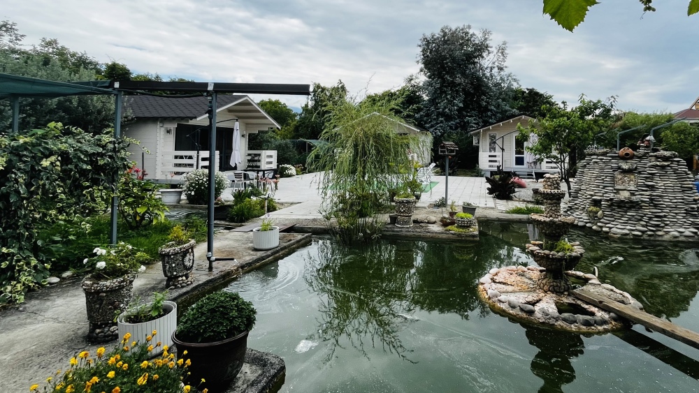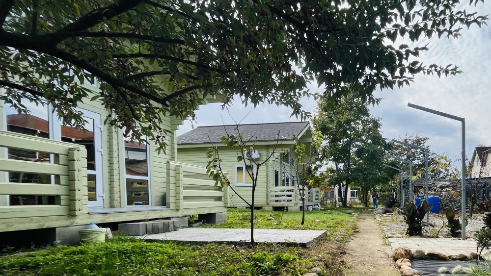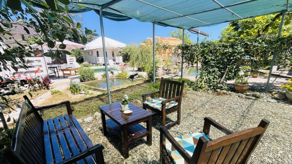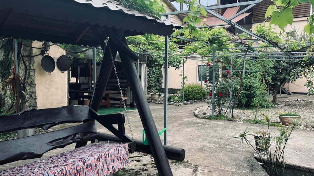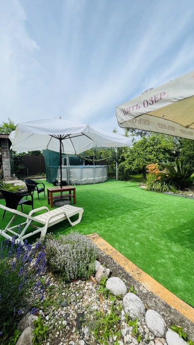На территории функционирует домашний храм. Постояльцы имеют возможность продегустировать самодельное вино и мед. Двор буквально утопает в зелени и цветах и похож на библейский Эдем. Для малышей оборудована детская площадка, есть каркасный бассейн. При необходимости можно взять напрокат оборудование для дайвинга или большую лодку. В стоимость проживания включено пользование мангалом, стиральной машиной и гладильными принадлежностями. Готовить предлагается самостоятельно на общей кухне или в номерах, оборудованных кухонной зоной. Кроме того, можно заказать комплексное питание, отдельные блюда на домашней кухне и избавить себя от лишних забот на отдыхе.