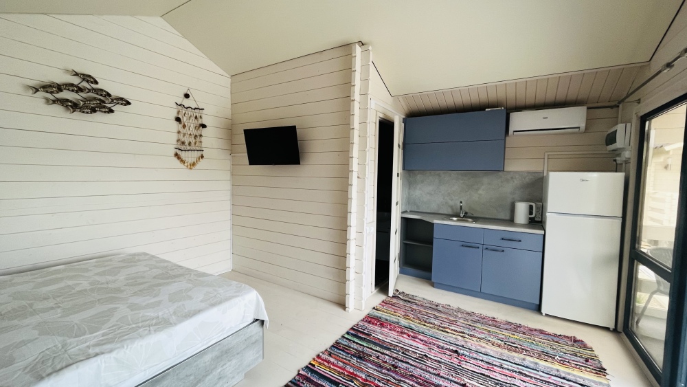 Жилой фонд разнообразный: номера категории «Эконом» с удобствами на этаже, просторные семейные «Стандарт» из двух и трех комнат, отдельные апартаменты, домики класса «Люкс» и шале со всеми удобствами для большой семьи или компании. В номерах всегда прохладно и свежо за счет установленных кондиционеров, подключен интернет на всей территории. в апартаментах кухни оборудованы всем необходимым для приготовления пищи, есть чайник и посуда. Шале подключены к резервной системе электрообеспечения с солнечными батареями.