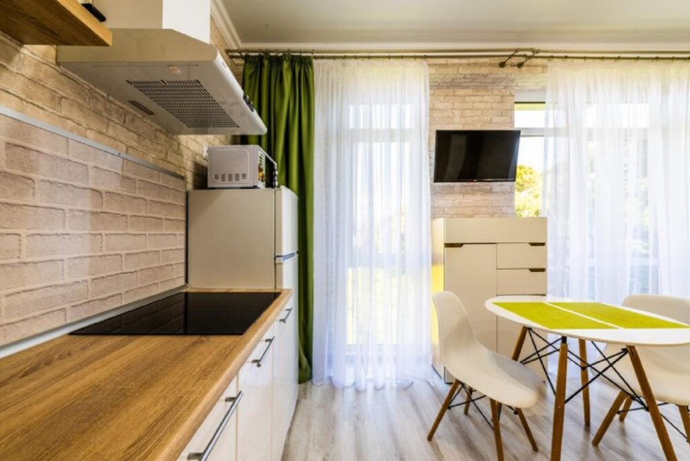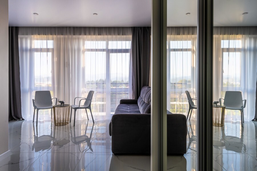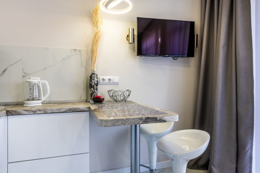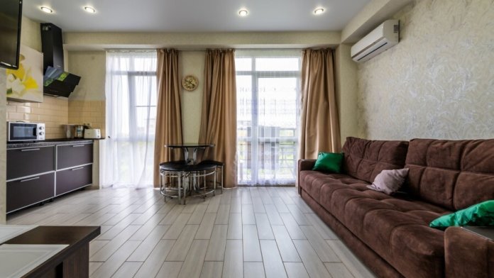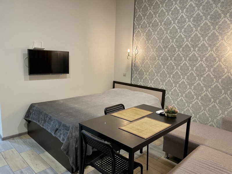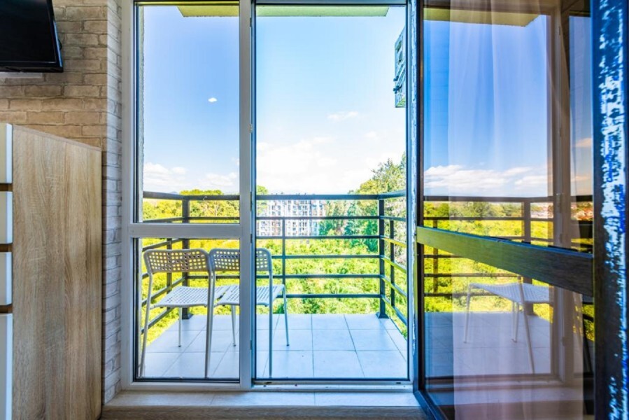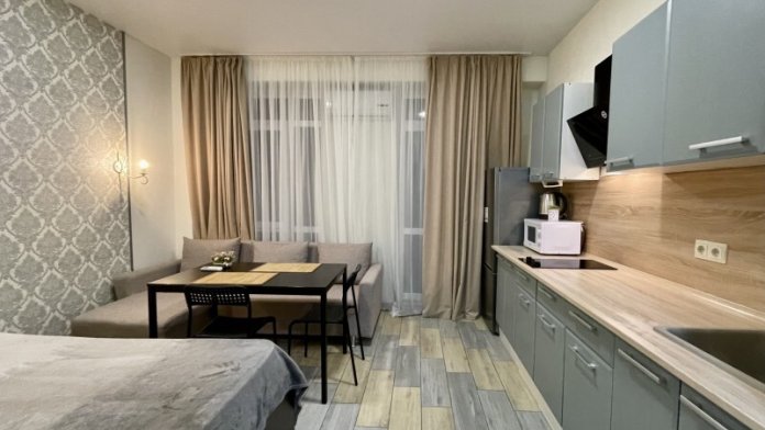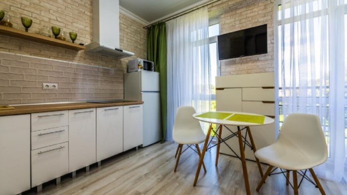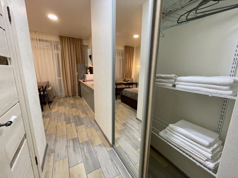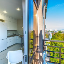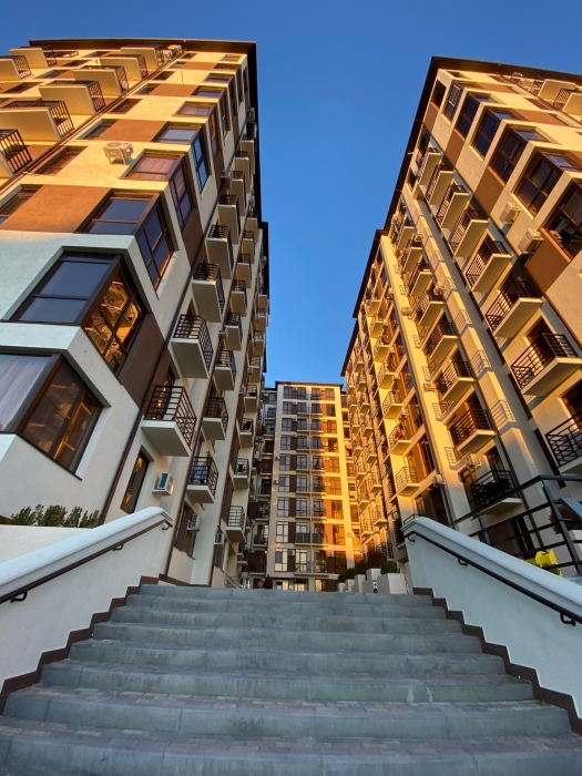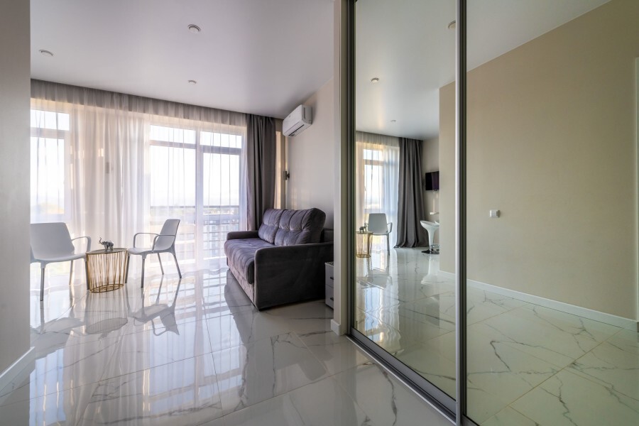 Современное десятиэтажное здание отеля, оснащенное лифтом, разместилось в курортной зоне «Сириус». В распоряжении гостей комфортабельные Апартаменты, оснащенные кухней и собственной ванной комнатой. В номерах стильный лаконичный интерьер, есть вся необходимая техника. Помимо кухонной техники, в апартаментах есть плазменный телевизор, фен, кондиционер и стиральная машина. Некоторые номера оборудованы балконами, откуда открываются красивые виды на море.