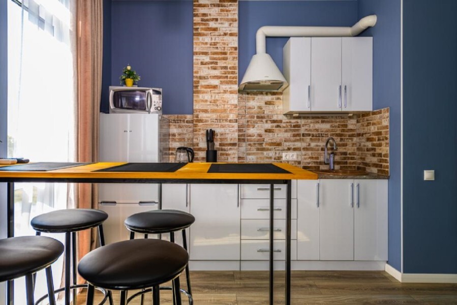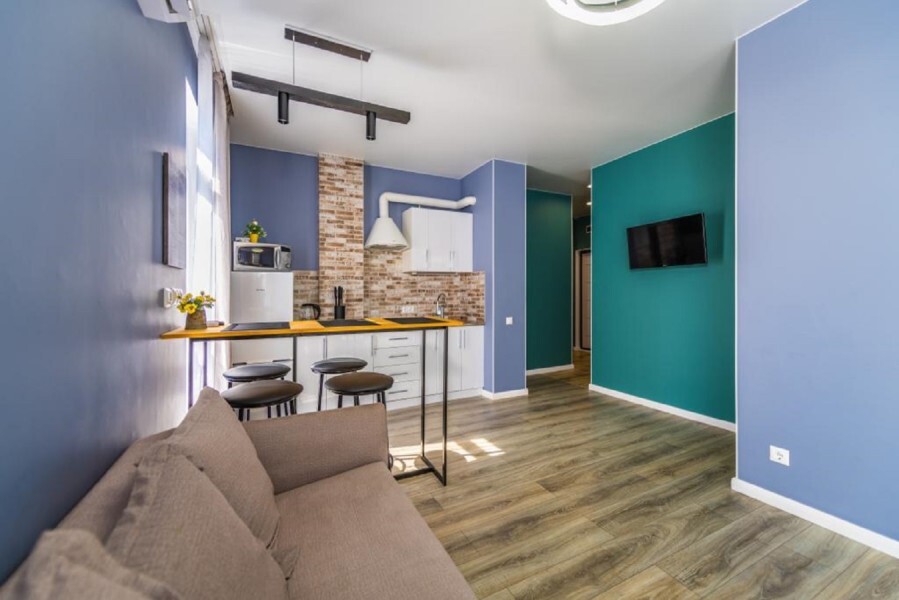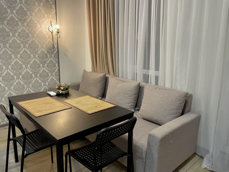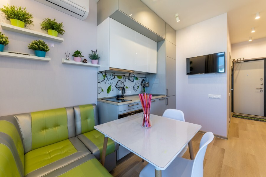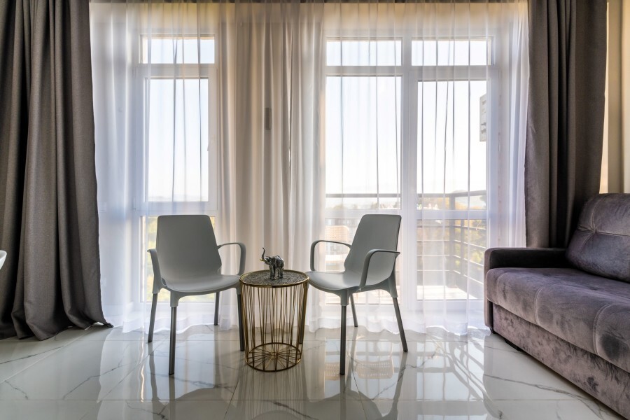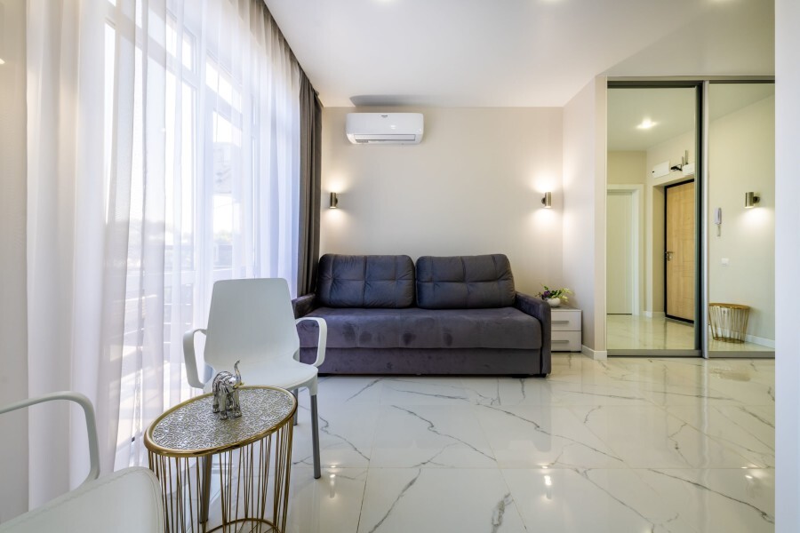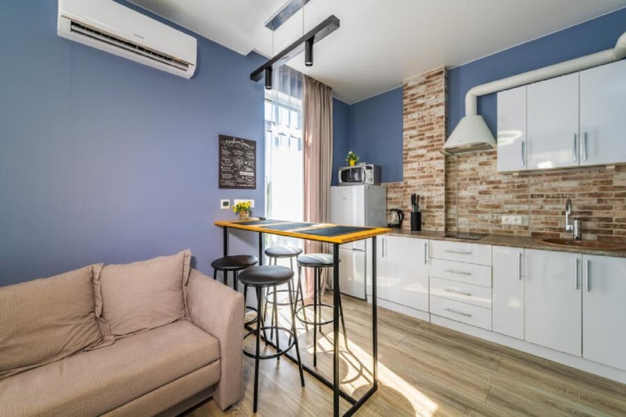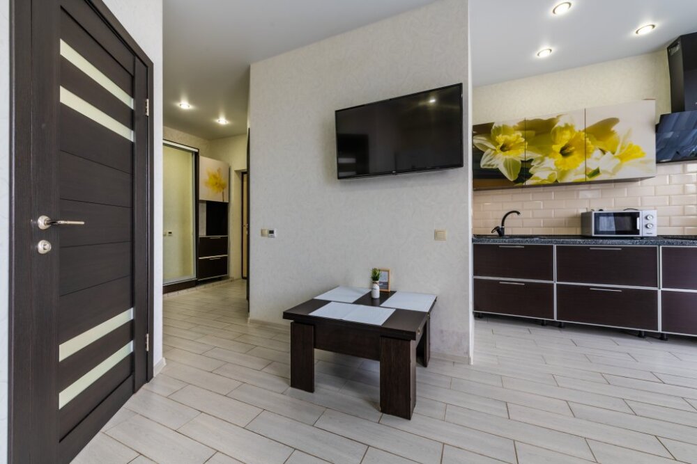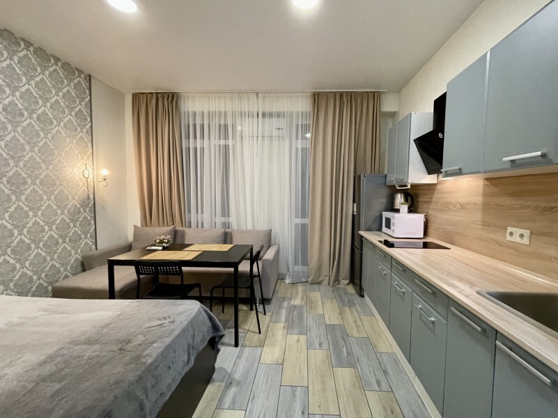 Современное десятиэтажное здание отеля, оснащенное лифтом, разместилось в курортной зоне «Сириус». В распоряжении гостей комфортабельные Апартаменты, оснащенные кухней и собственной ванной комнатой. В номерах стильный лаконичный интерьер, есть вся необходимая техника. Помимо кухонной техники, в апартаментах есть плазменный телевизор, фен, кондиционер и стиральная машина. Некоторые номера оборудованы балконами, откуда открываются красивые виды на море.