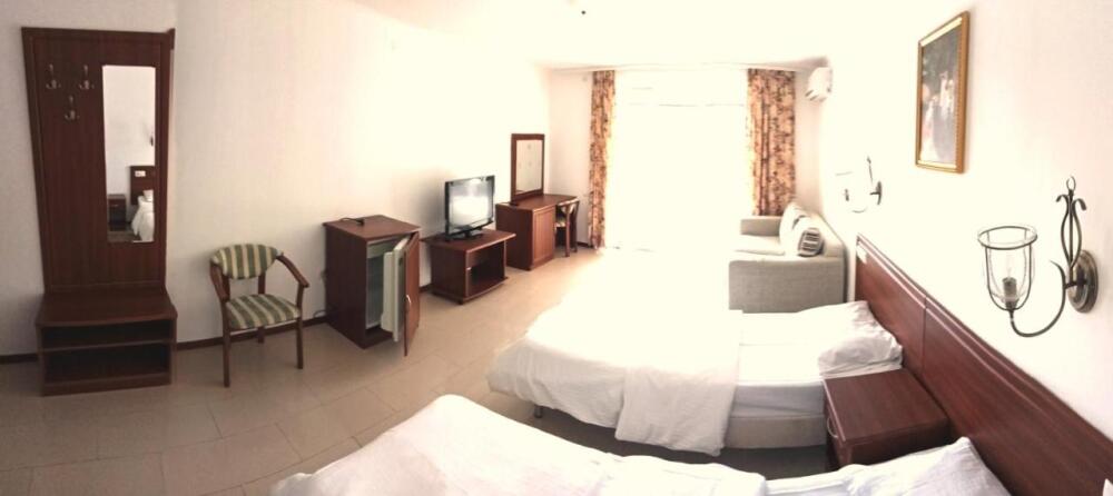 В номерах есть кондиционер, письменный стол, сейф, телевизор с плоским экраном, балкон и собственная ванная комната с биде. В числе стандартных удобств - шкаф для одежды.