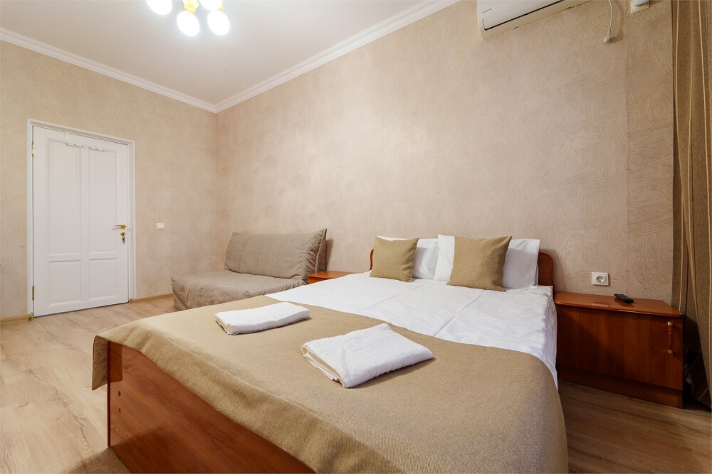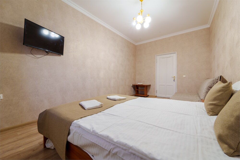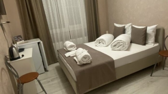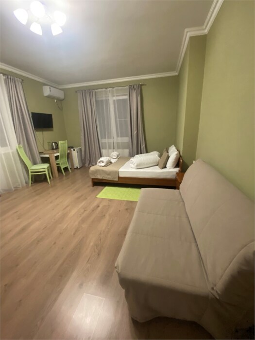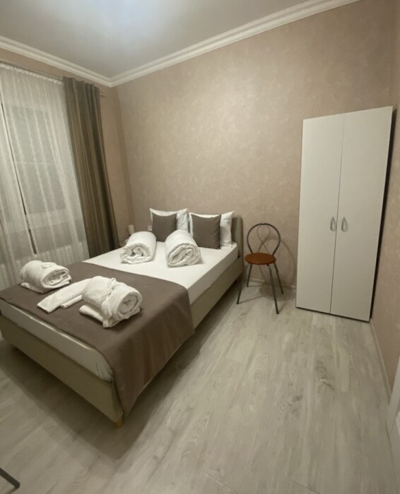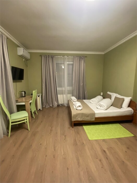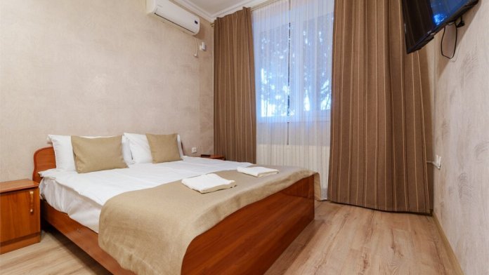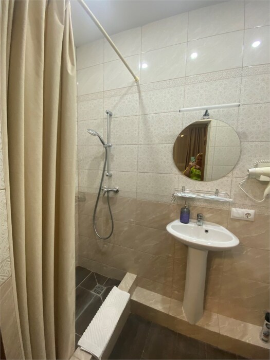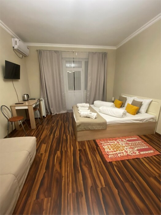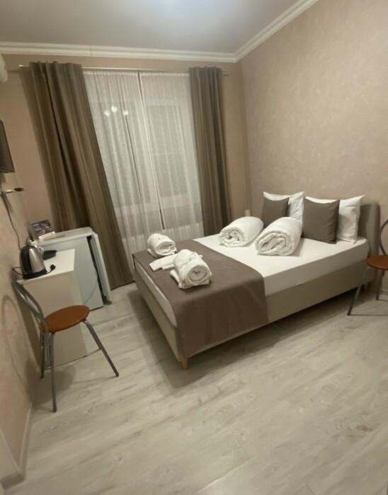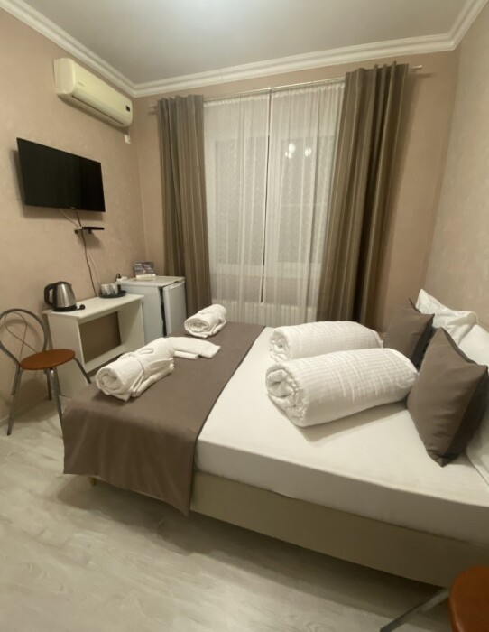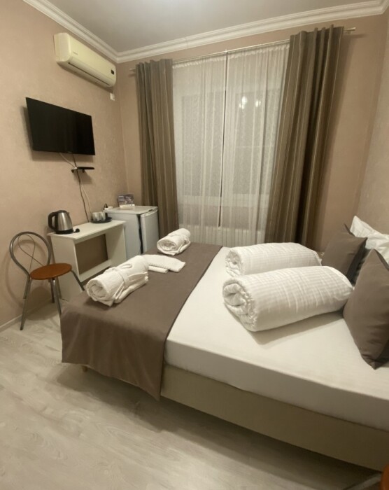 Общая ванная комната на этаже на 3 номера. В номере большая кровать для 1-2 человек. Номер оснащен кондиционером, телевизором, холодильником, электрическим чайником. wi-fi.