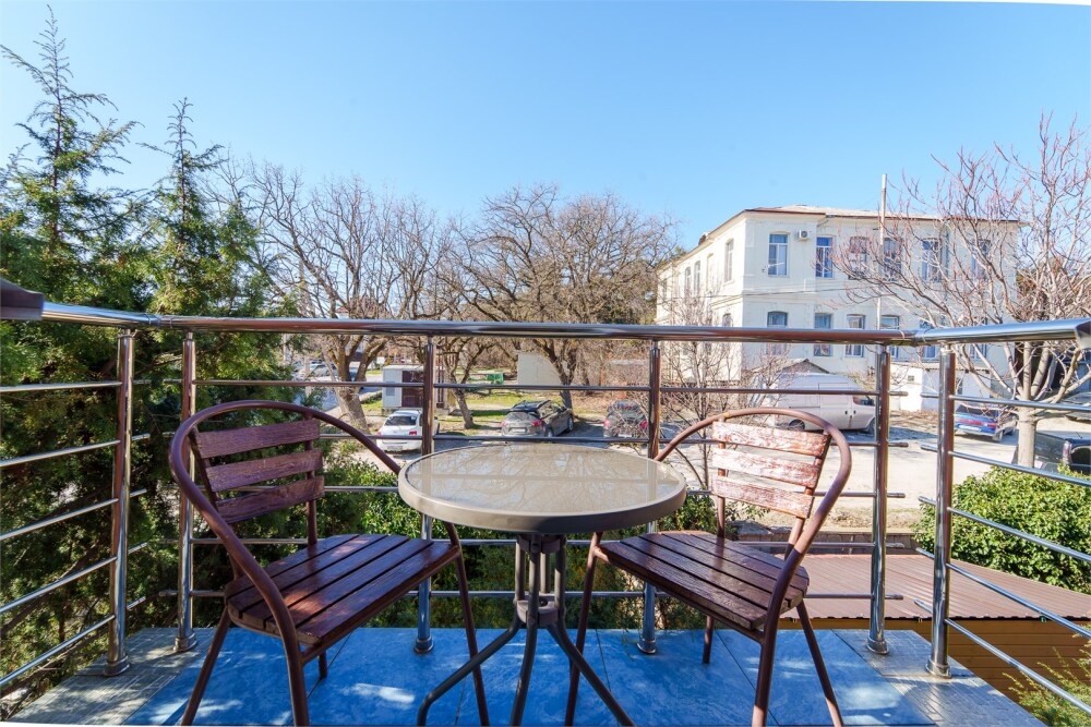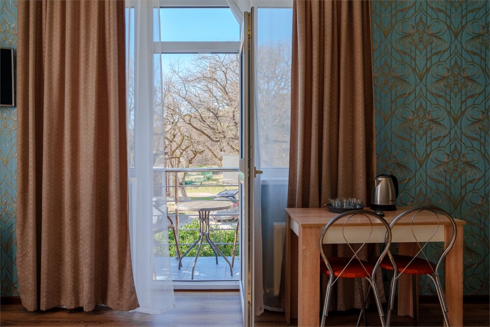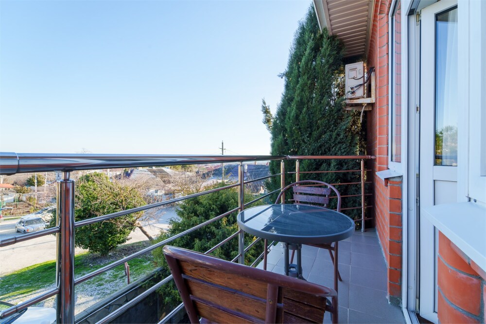 Номера категории полулюкс с балконом расположены на 2 этаже гостевого дома. Душ с санузлом совмещенный, фен. Вместимость до 2 человек (на основном месте) и до 2 человек на дополнительных места (диван-кровать). Оснащение: кондиционер, телевизор, холодильник. Уютный балкончик со столиком и стульями, с которого можно любоваться окрестностями. Wi-fi , белое постельное белье, полотенца, халат, тапочки.