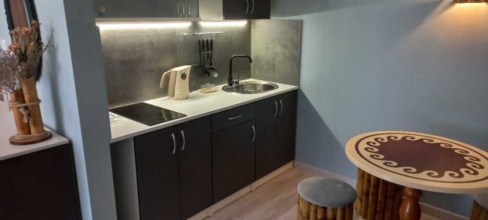Имеется оборудованная кухня с набором посуды для самостоятельного приготовления пищи.