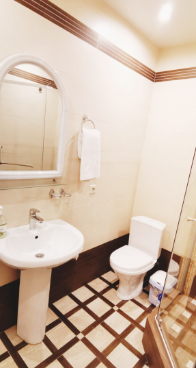 Санузел раздельный, душевая кабина и туалет в отдельных помещениях.