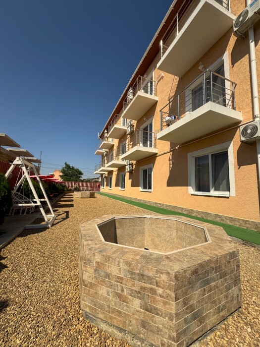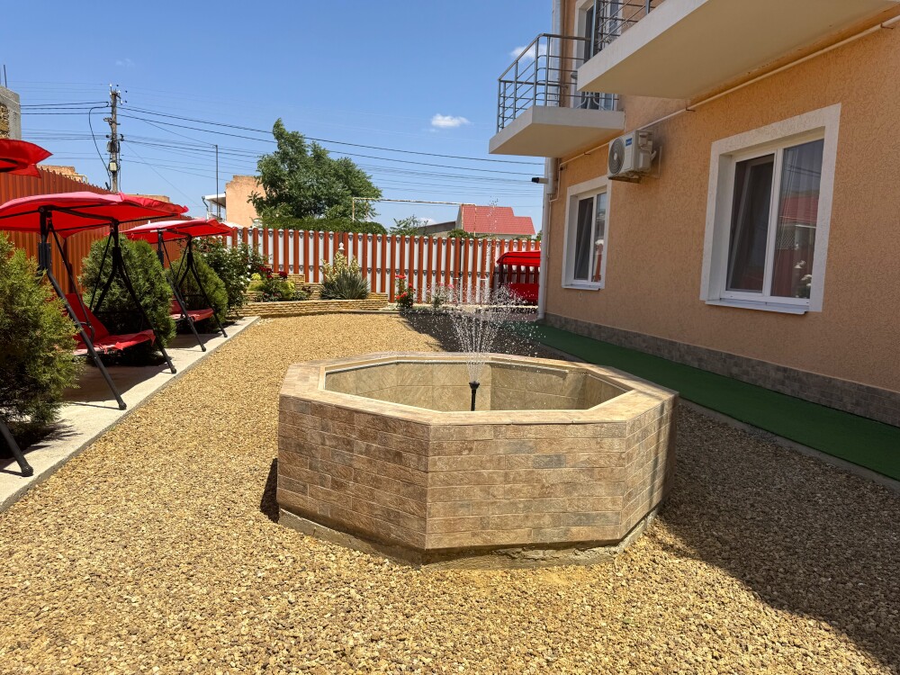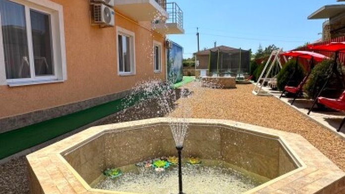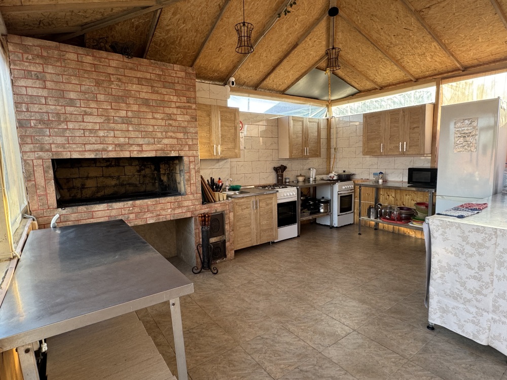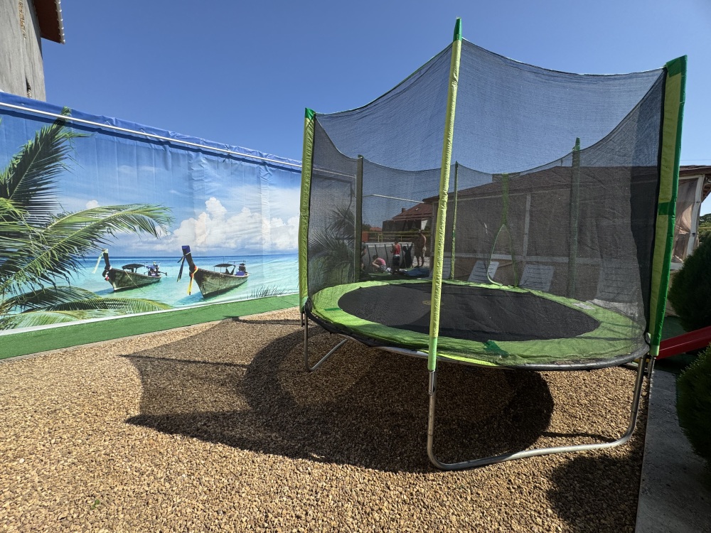 У нас большая благоустроенная территория , качели , фонтаны, озеленение, большой батут для детей, самое главное общая кухня 60 квадратных метров с зоной мангала, удобное место для курения.