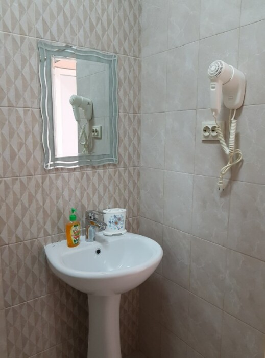 Этаж имеет оборудованное место: микроволновая печь, электрический чайник, которые доступны для пользования круглосуточно, бесплатно. Стаканы и поднос для фруктов в каждом номере имеются. Для гостей, которые планируют длительный отдых, мы предоставляем возможность использования стиральной машины за дополнительную плату. Территория полностью закрыта, вход по чип ключу.