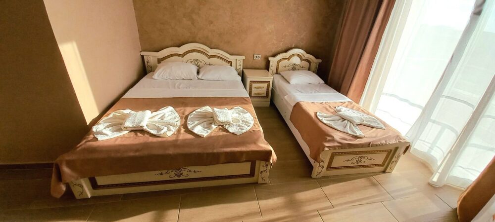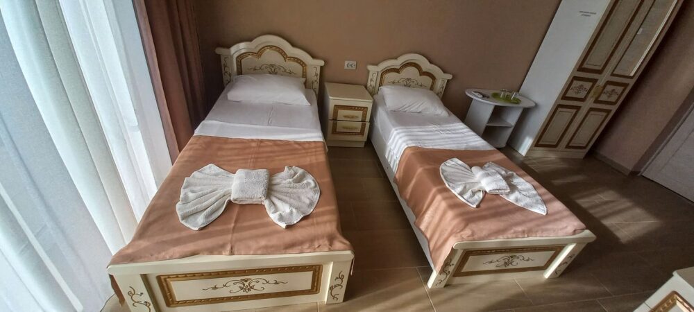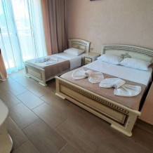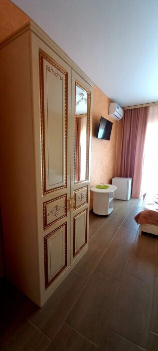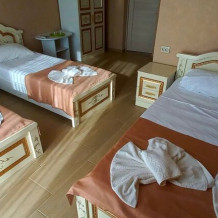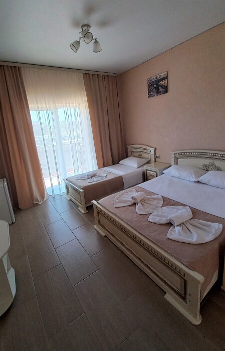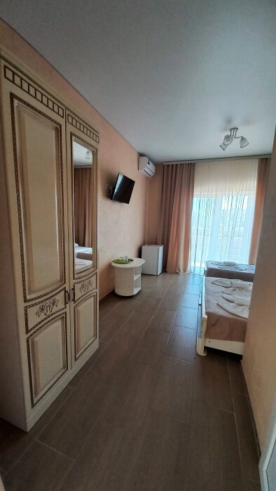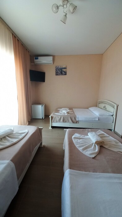 Во всех номерах установлен шкаф для одежды и телевизор с плоским экраном, оборудована собственная ванная комната с феном, полотенцами в 3-размерах на каждого отдыхающего, а так же гигиеническими принадлежностями. В числе удобств холодильник в номере, а для номеров с балконом уличная сушка для белья индивидуальная. Установлены на все окна защитные антимоскитные сетки.