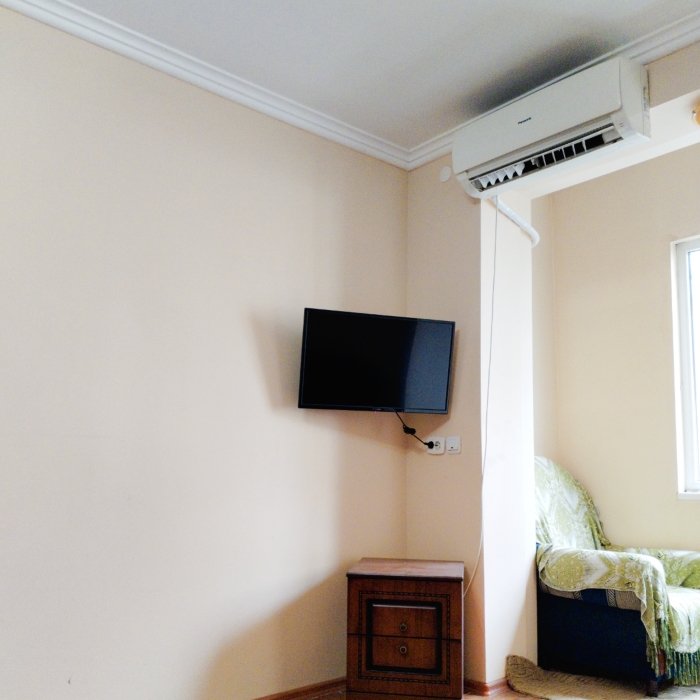 В квартире созданы абсолютно все условия для максимально комфортного отдыха. К услугам отдыхающих газовая плита, холодильник, пылесос, утюг, гладильная доска и т.д. Есть телевизор, установлен кондиционер, работает интернет Wi-Fi. Имеется парковка перед зданием дома (бесплатно), а также есть платная автостоянка.