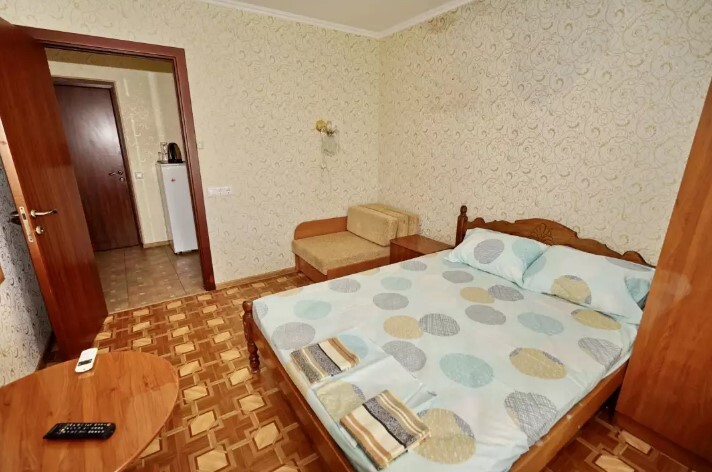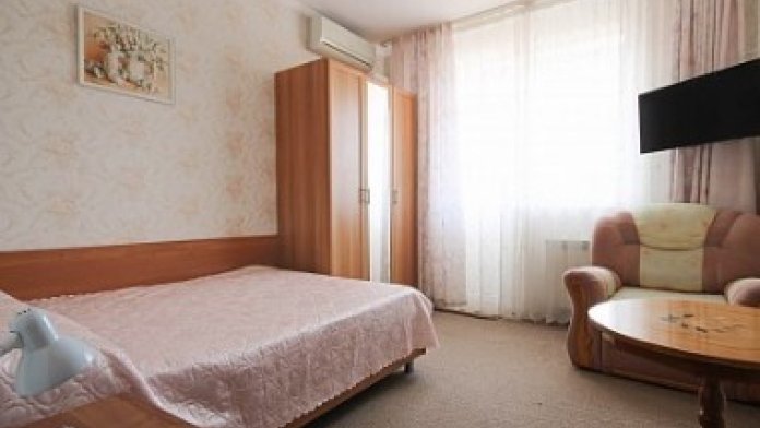Спальные места: двухспальная кровать или две односпальные и кресло-кровать. Мебель: стулья, стол, шкаф, прикроватные тумбочки, прихожая, вешалка, зеркало. Дополнительное место не входит в стоимость номера. Примечания к цене: Если в номере людей будет проживать больше, чем положено, нужно оплатить дополнительные места.