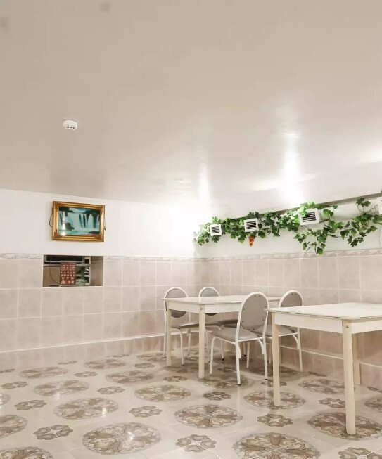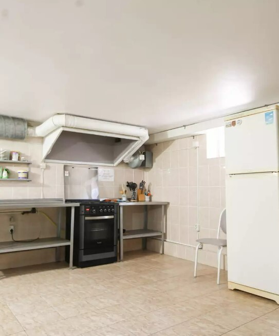 Желающие готовить самостоятельно, могут воспользоваться кухней. Так-же имеется тариф «Завтрак включен». Кухня оснащена всем необходимым: газовая плита, микроволновка, посуда, холодильник, шкафы для хранения продуктов и посуды. Рядом находится летний зал — столовая, со столиками.