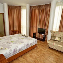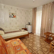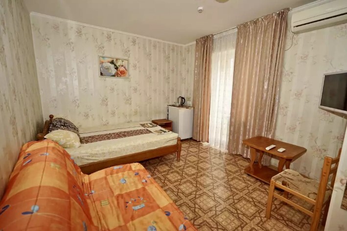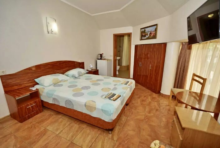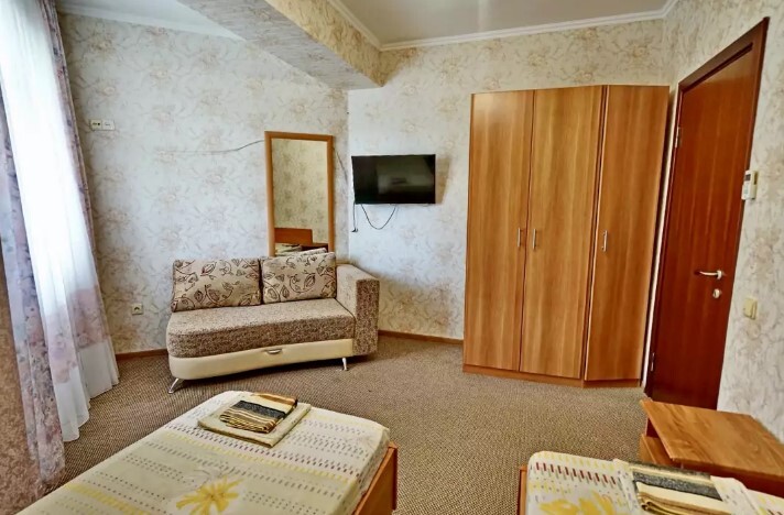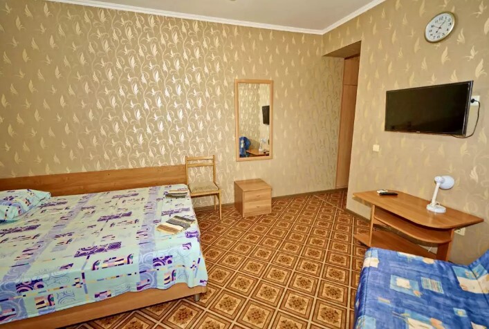 Для проживания, у нас имеются стандартные номера 2х 3х 4х местные, а так же семейные двух комнатные номера на 6-7 человек. Светлые спальни с персональными ванными комнатами, просторные балконы . Все комнаты оборудованы сплит-системами, холодильниками, телевизорами, эл. чайник и всей необходимой мебелью. Работает WI-FI. Предоставляются индивидуальные приборы (щетка, мыло, гель для душа, шампунь). Уборка номеров со сменой белья каждые 5 дней.