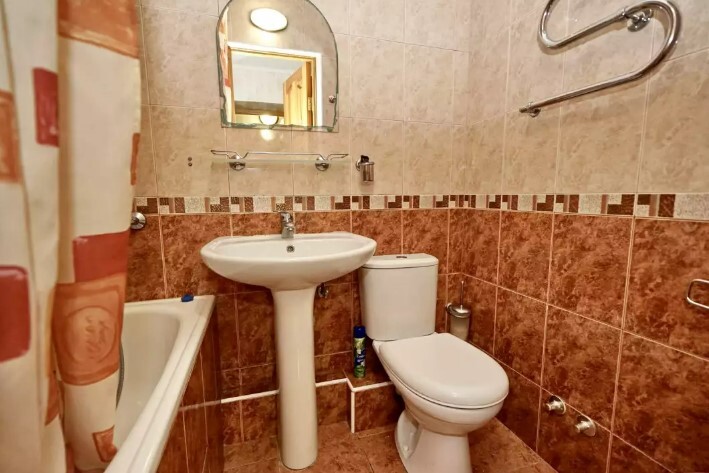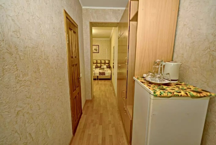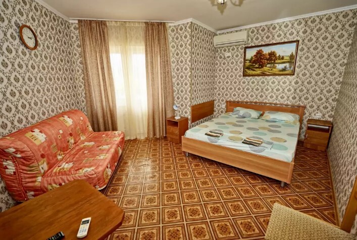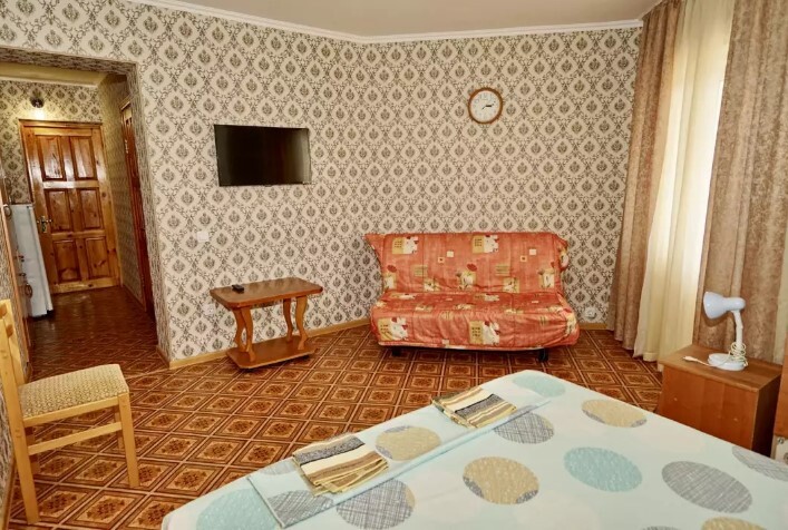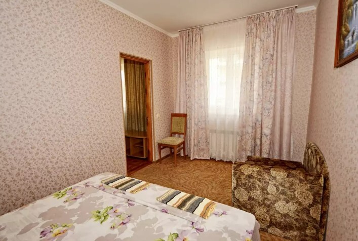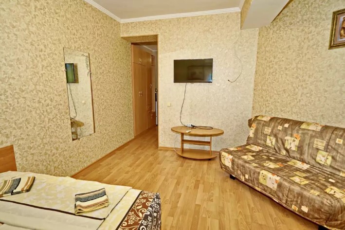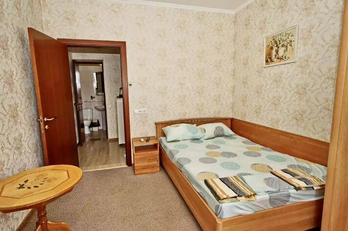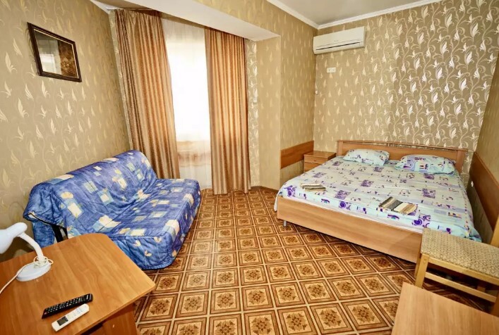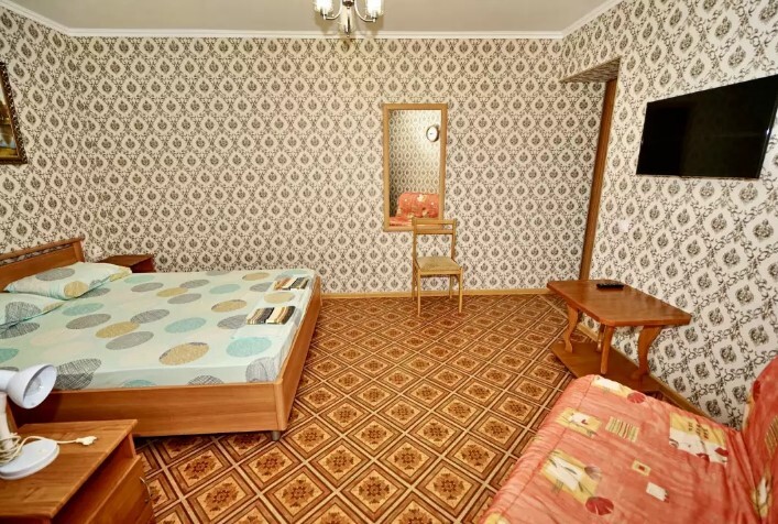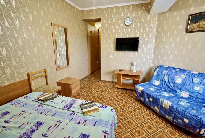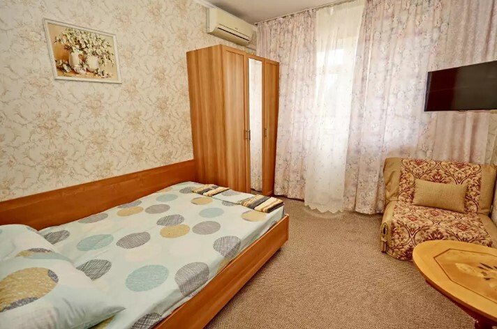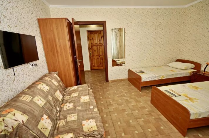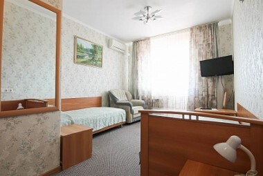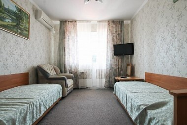 Спальные места:двух-спальная кровать или две односпальные или диван-кровать. Мебель: стулья, стол, шкаф, прикроватные тумбочки, прихожая, вешалка, зеркало. Дополнительное место не входит в стоимость номера. Примечания к цене: Если в номере людей будет проживать больше, чем положено, нужно оплатить дополнительные места.