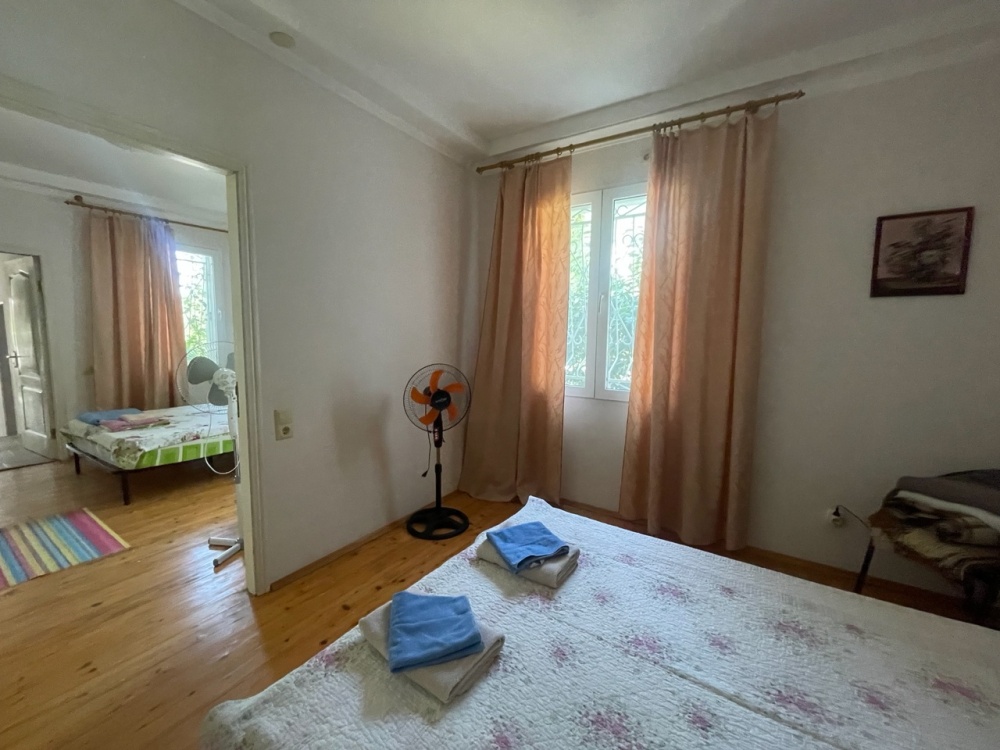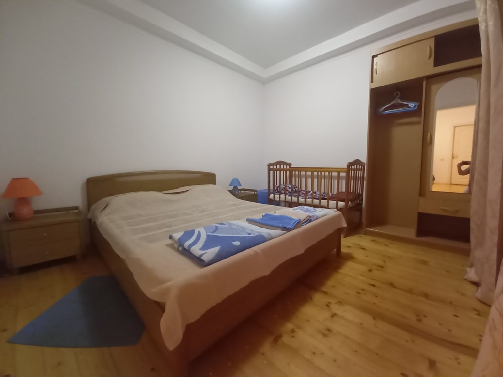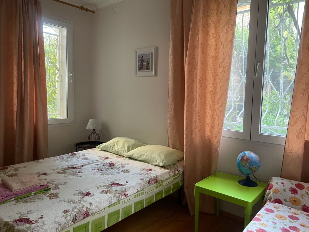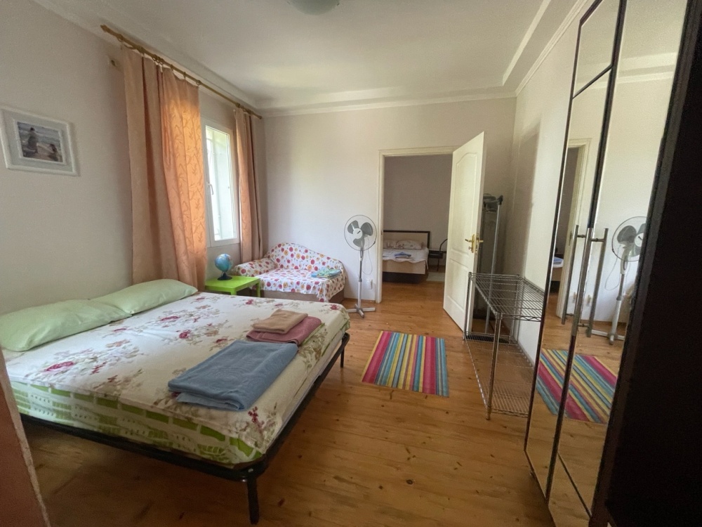 В доме четыре спальни, два санузла, просторная гостиная-кухня, а также есть все необходимое для комфортного проживания: стиральная машина, микроволновая печь, набор посуды, постельное бельё, полотенца, телевизор, кондиционер в гостиной, интернет. Спальные места: в первой спальне – двуспальная кровать, в смежной с ней спальне – двуспальная кровать, в другой, изолированной спальне – двуспальная кровать, детская кроватка для малыша, в смежной с ней спальне – две односпальные тахты.