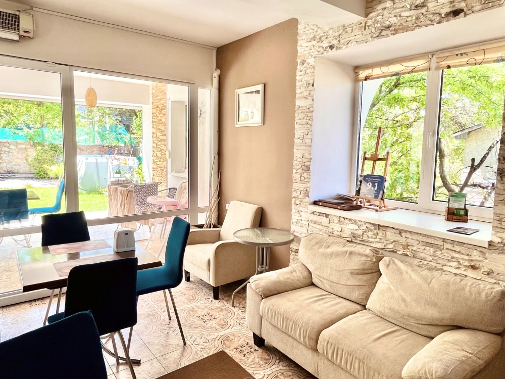 В распоряжении гостей прекрасный светлый зал 160 кв. м с видом на горы.