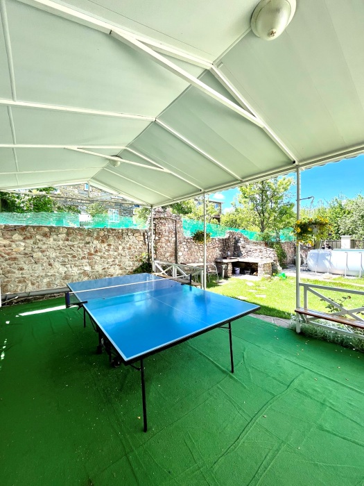 бассейном, мангальной зоной, беседками, настольным теннисом, кострищем, залом для