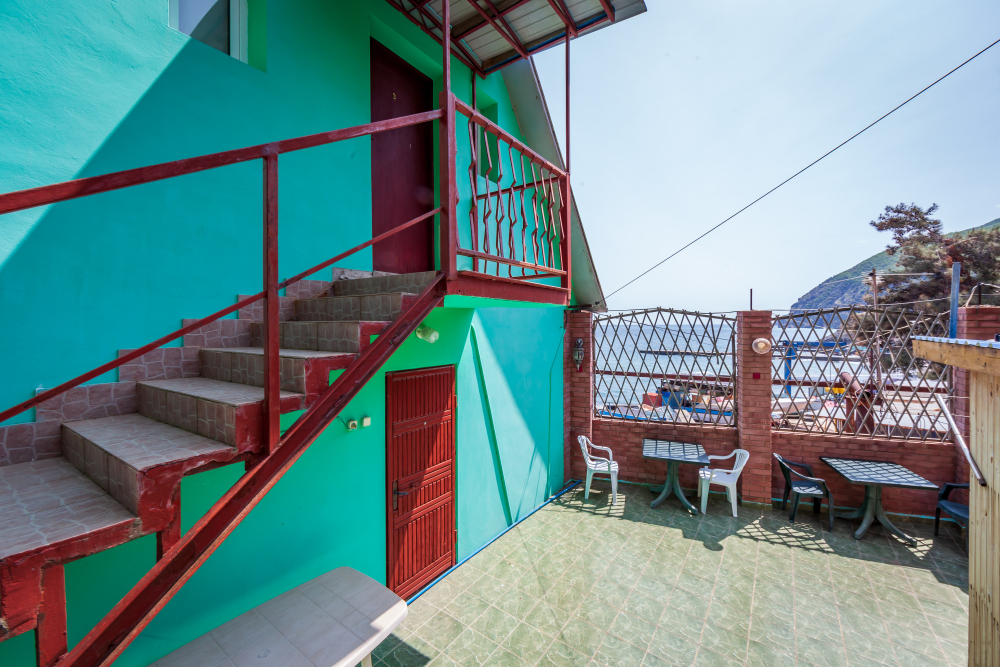 Главной особенностью является то, что практически вся территория состоит из террас, благодаря чему у домов «Полулюкс» и «Люкс» имеется свой небольшой дворик для отдыха с мангалом и летней садовой мебелью. Также имеются более бюджетные варианты проживания - комнаты «Стандарт», из окон которых открывается живописный морской вид.