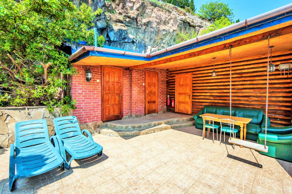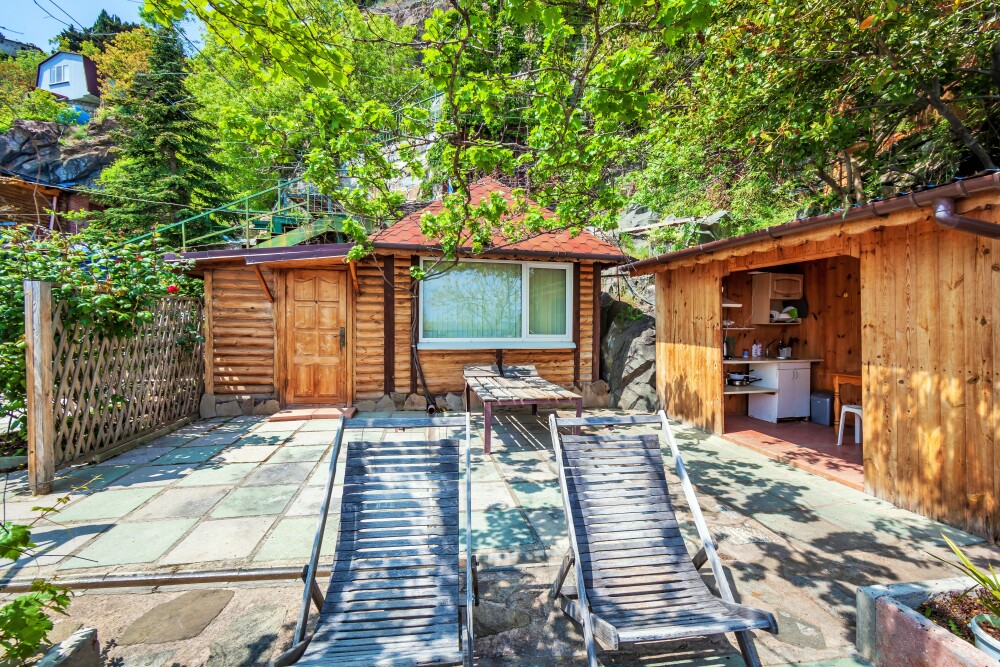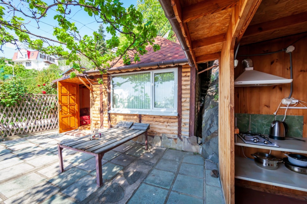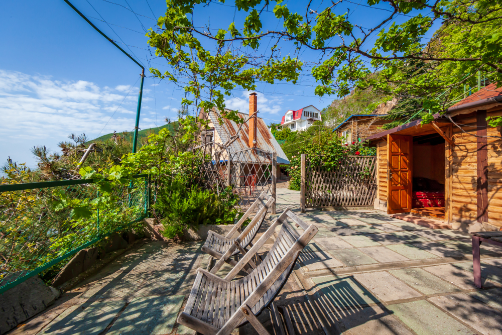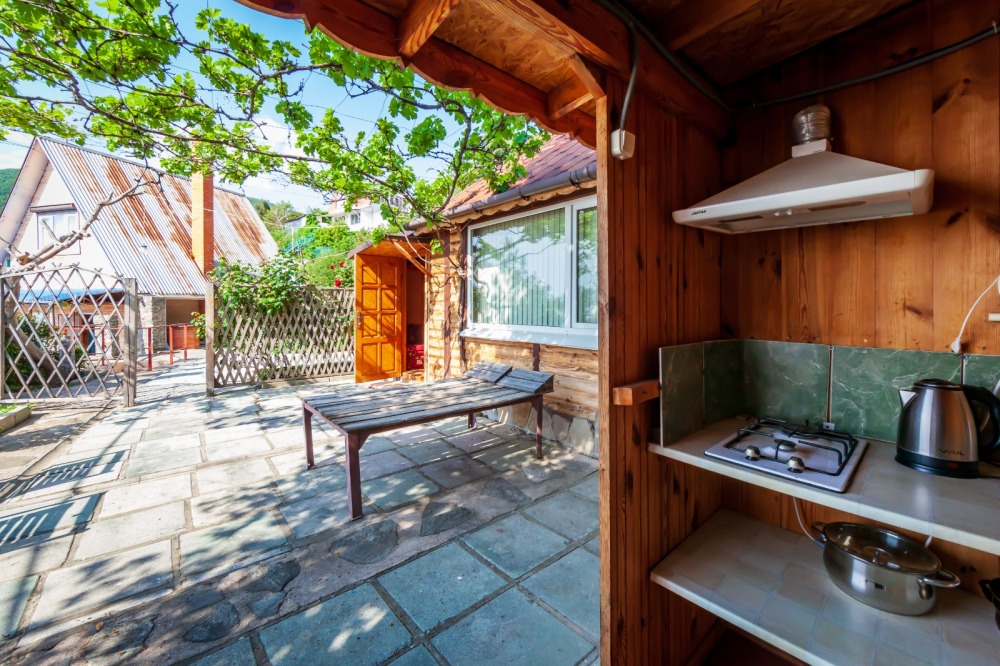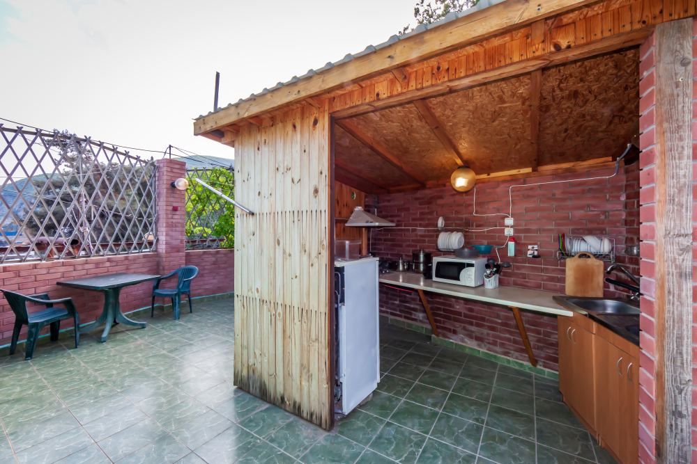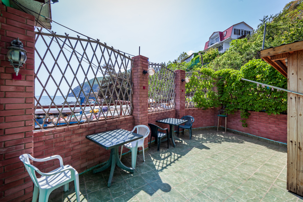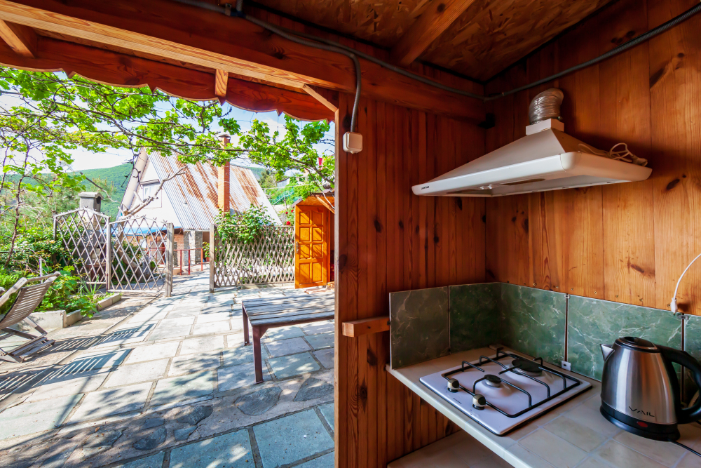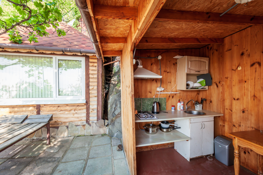 Для этих комнат, помимо общей территории, имеется отдельная площадка со столиками и летняя кухня со всем необходимым.