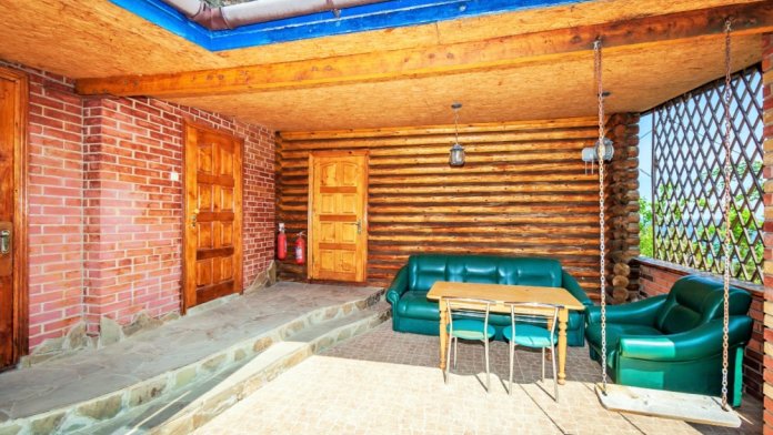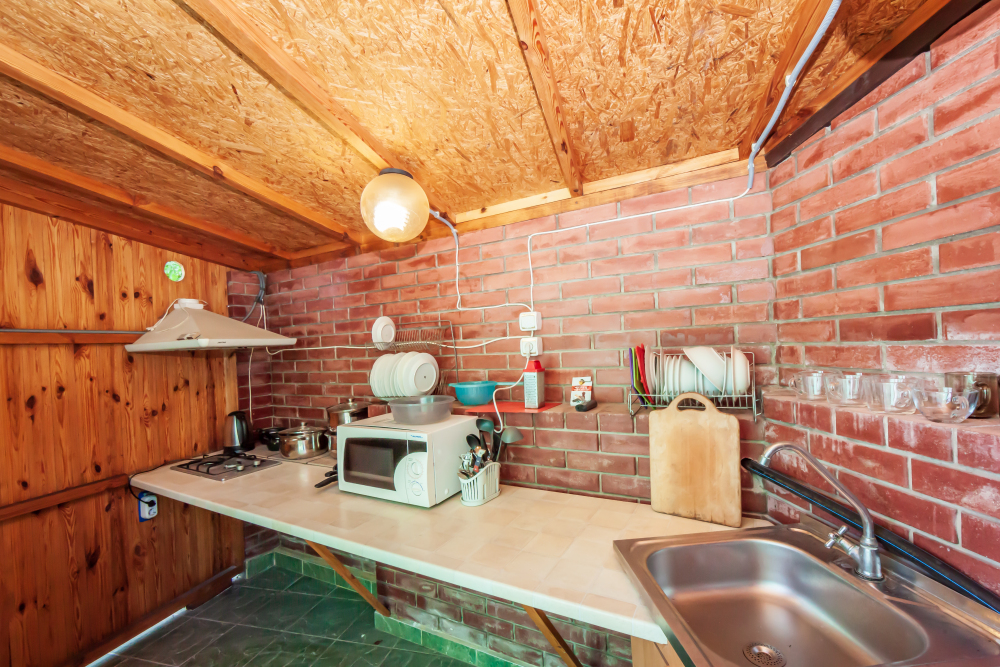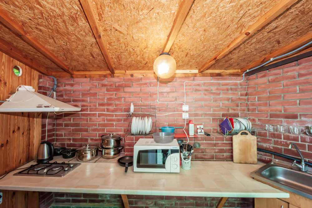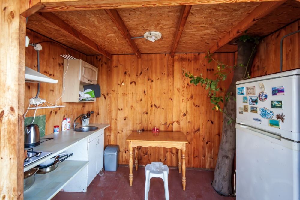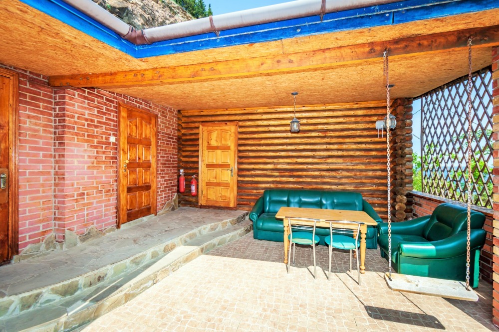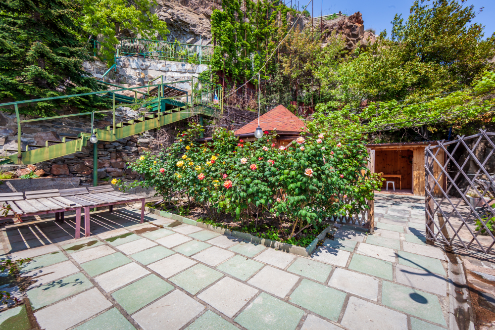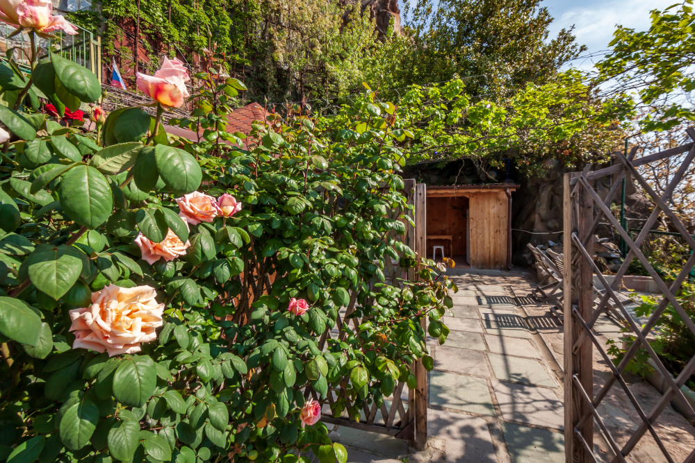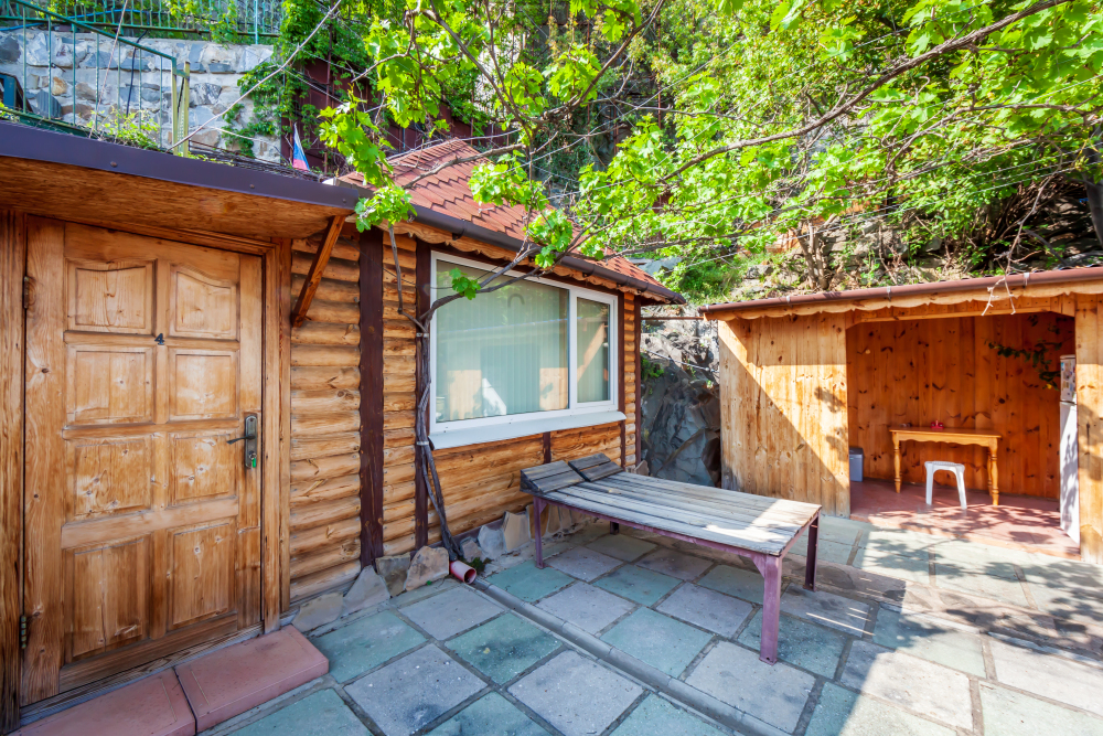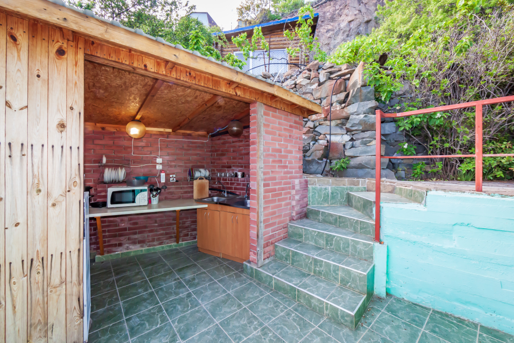 Для этих комнат, помимо общей территории, имеется отдельная площадка со столиками и летняя кухня со всем необходимым.