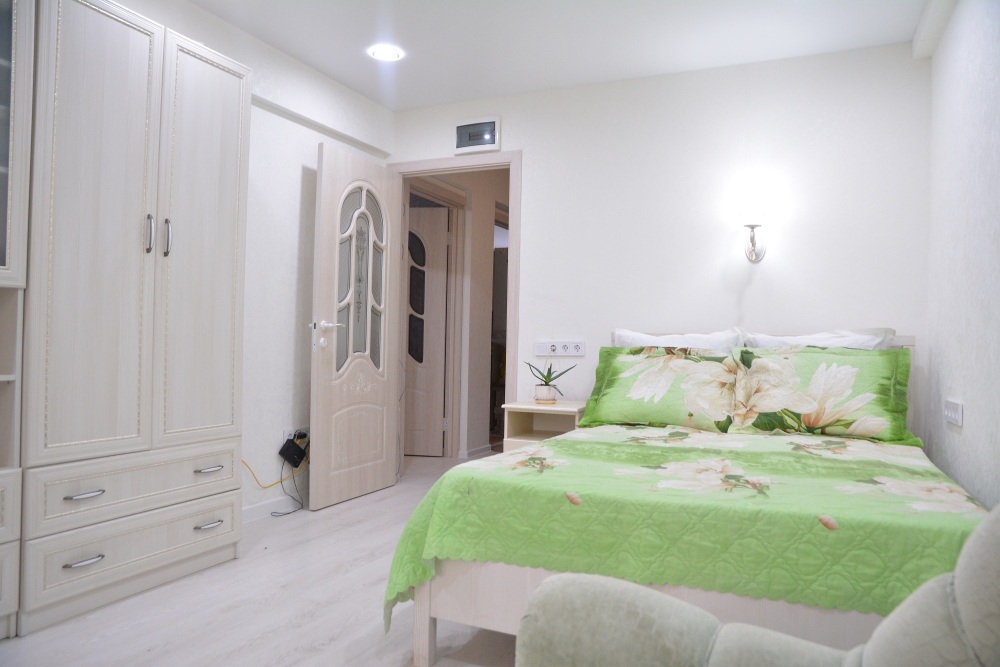 Наличие пяти полноценных спальных мест (две двуспальные и одна односпальная кровати) делает апартаменты универсальными. Свежий капитальный ремонт 2022 года и застекленный жилой балкон создают приятную атмосферу чистоты и домашнего уюта. Раздельный санузел является весомым преимуществом для многоместного размещения, сокращая время на утренние сборы.