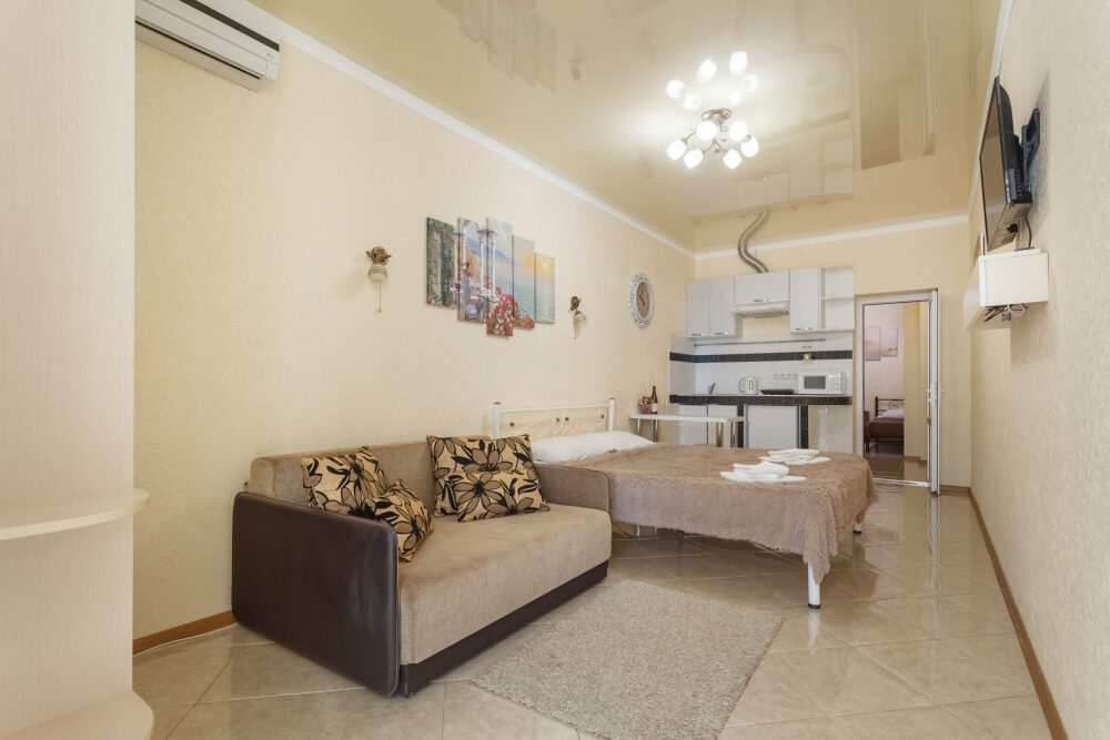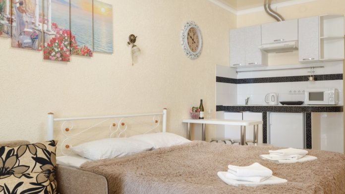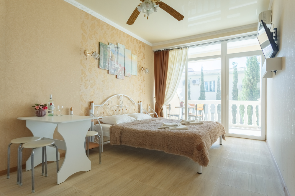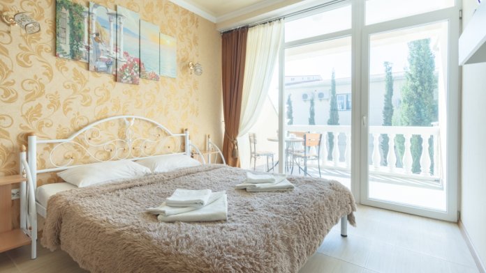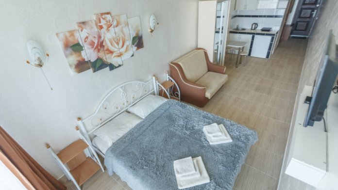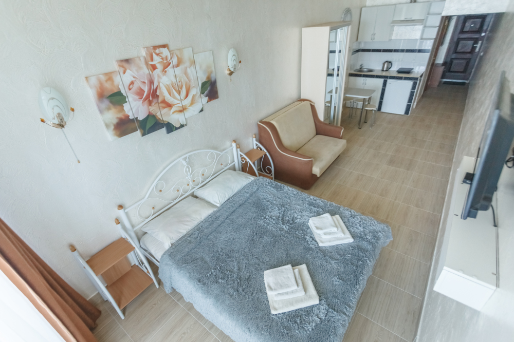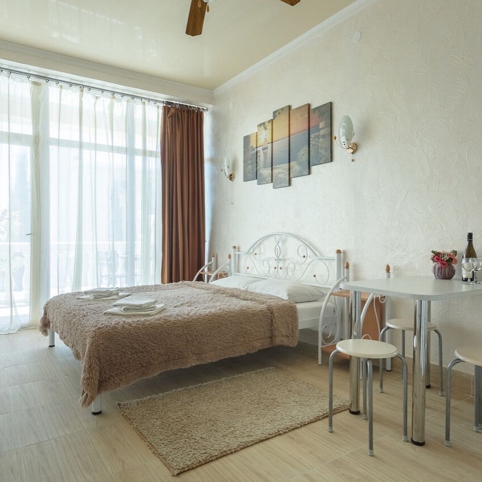 Трёхэтажная «Вилла Арнис» располагает апартаментами различного размера - от 30 до 95 кв.м., многие из которых с прекрасным видом на море и горы.