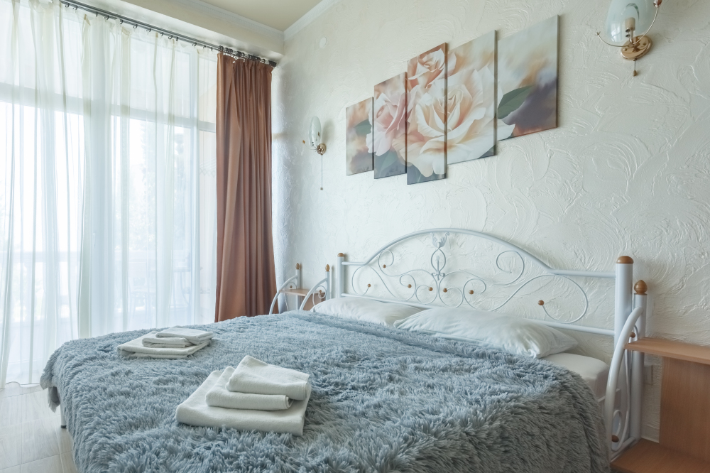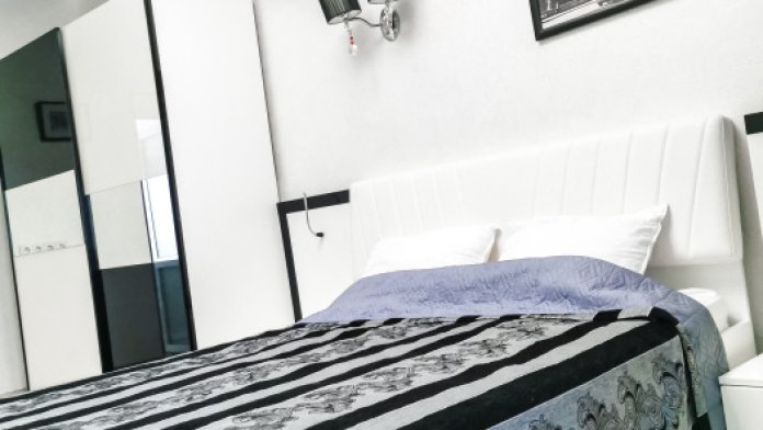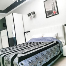 -двуспальная кровать, прикроватные тумбочки;