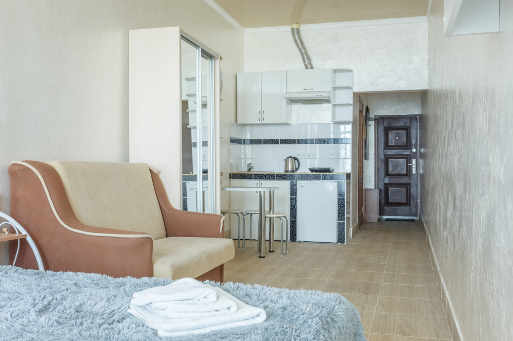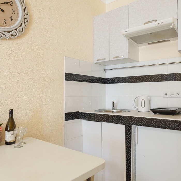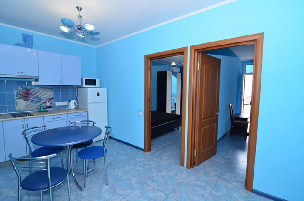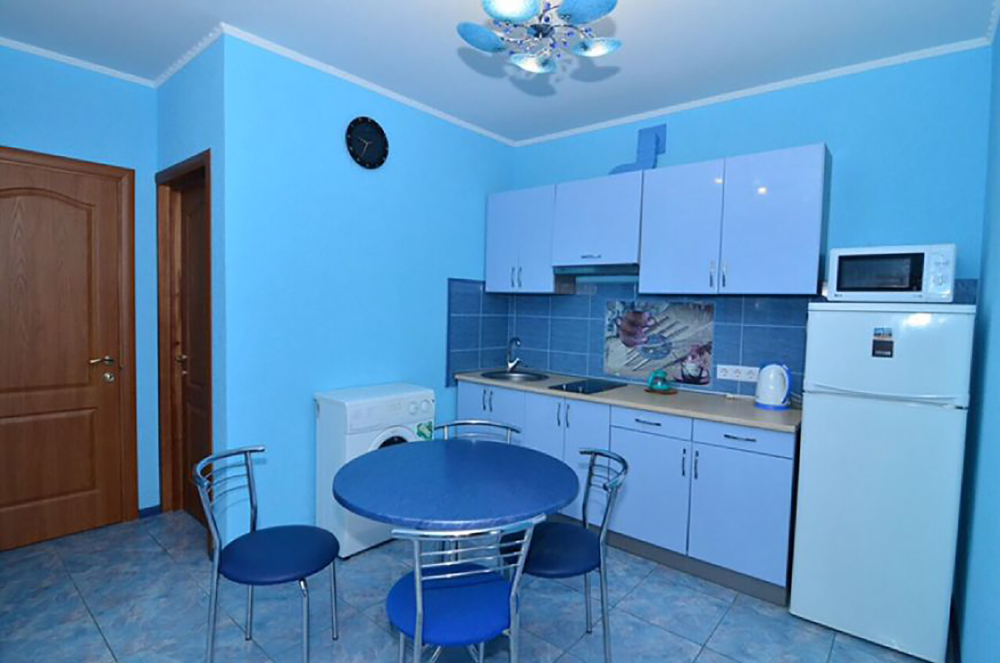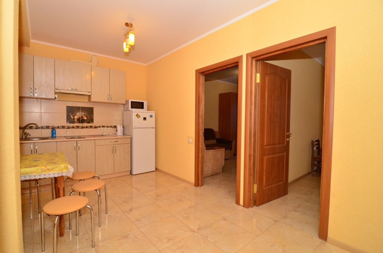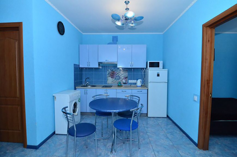 Также в каждом номере есть собственная кухня со всем необходимым для самостоятельного приготовления пищи.