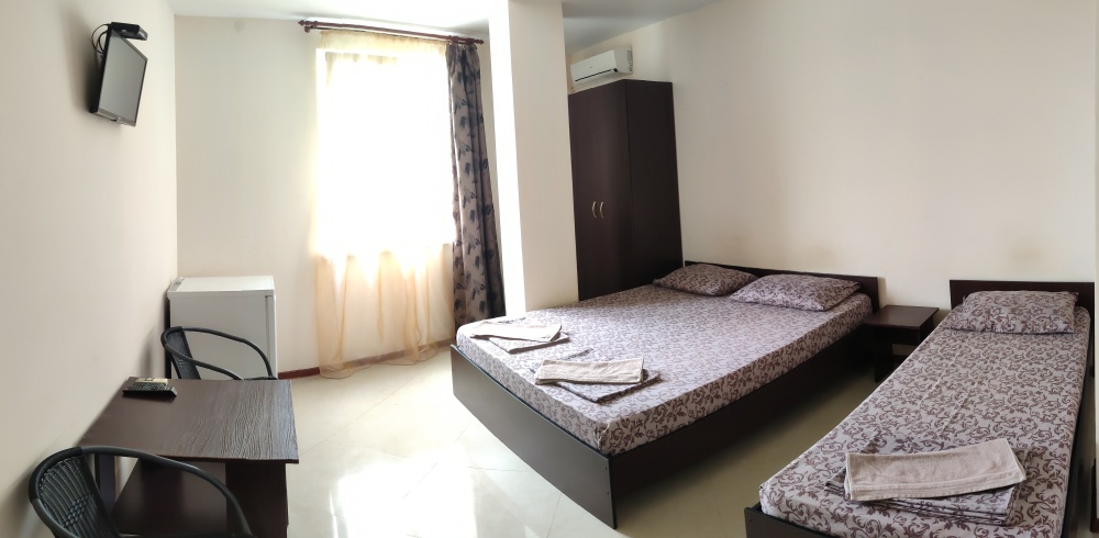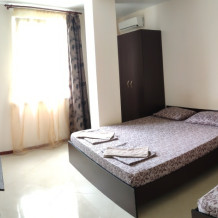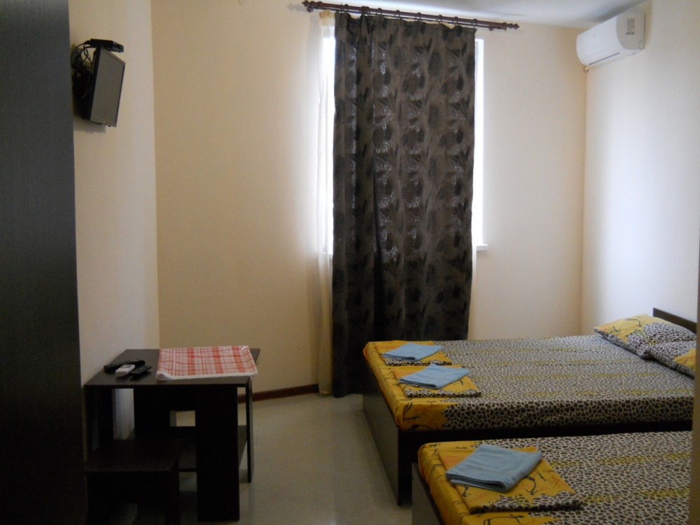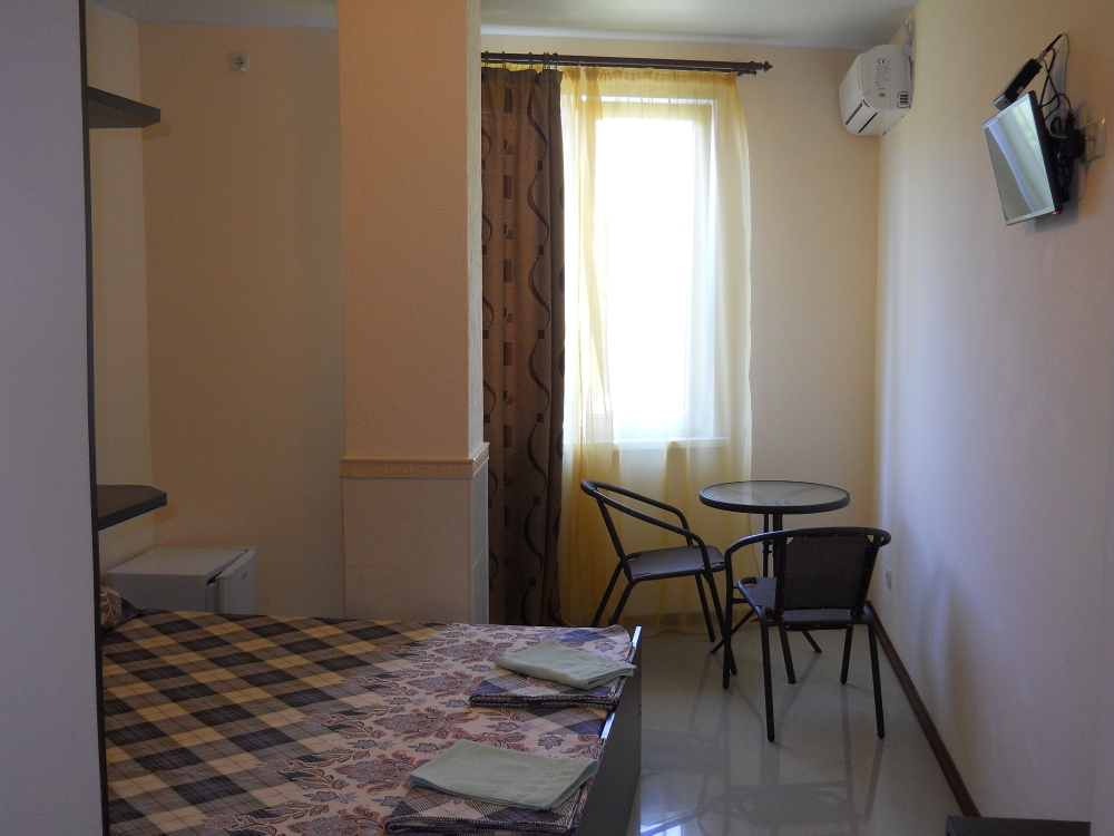 Предлагаем уютные комнаты в частном доме в 6 минутах ходьбы от бесплатного пляжа «Русалка». В комнатах свой санузел, кондиционер, холодильник, ТВ. На каждом этаже общая, оборудованная кухня. Интернет Wi-Fi - бесплатно.
