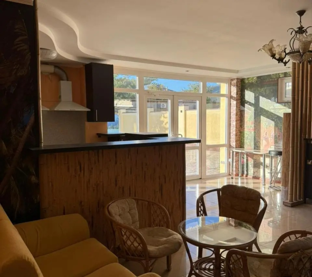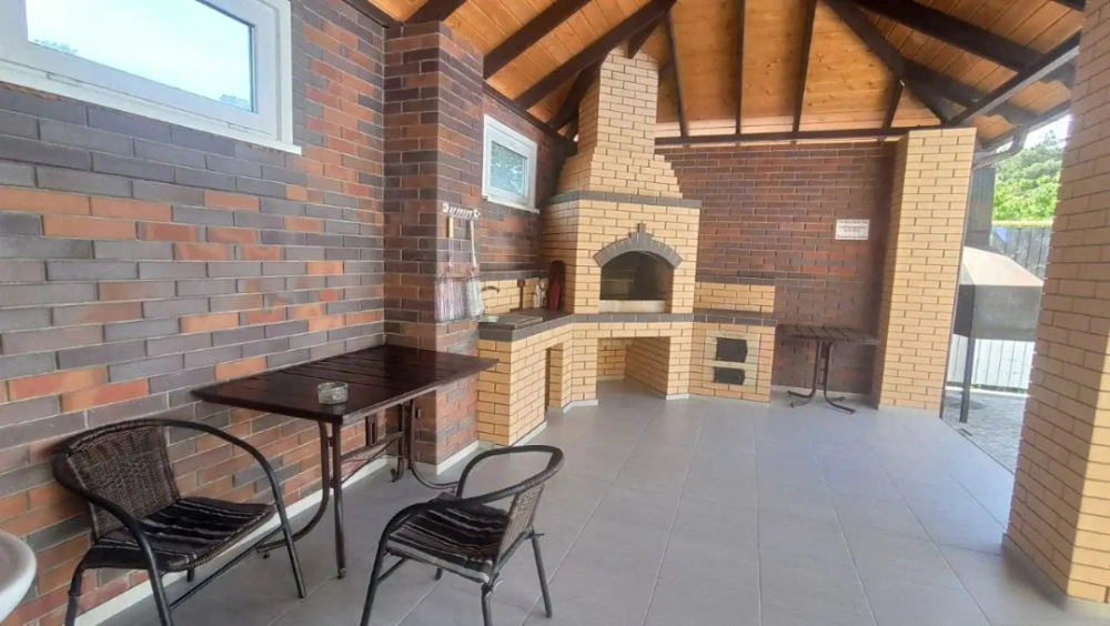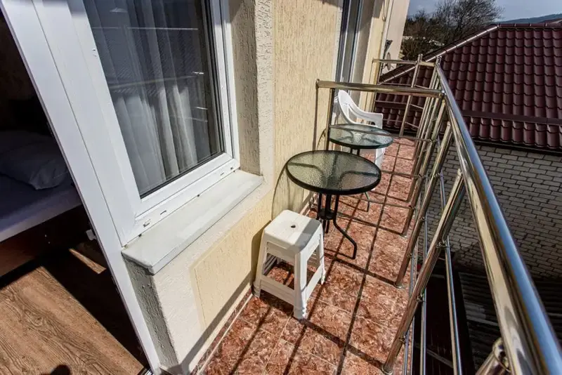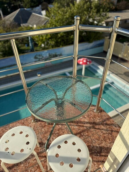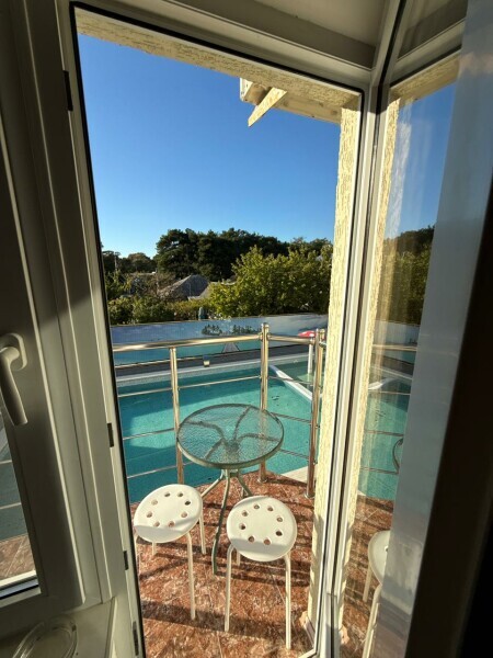 На территории гостевого дома оборудован просторный подогреваемый бассейн с детской зоной, системой автоматической очистки и ежедневной обработкой воды. Для отдыха предусмотрены уютные столики и комфортабельные шезлонги.