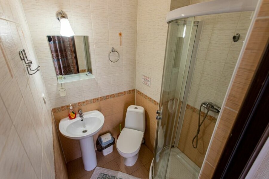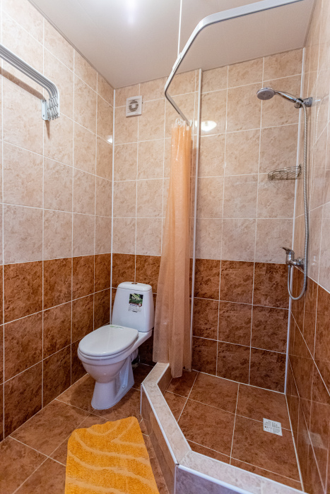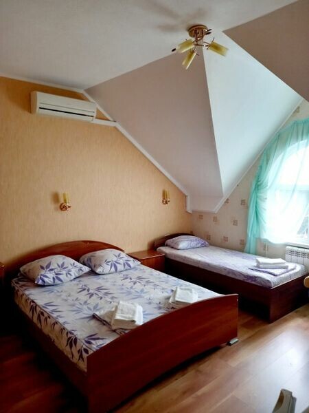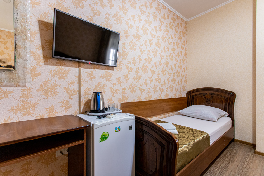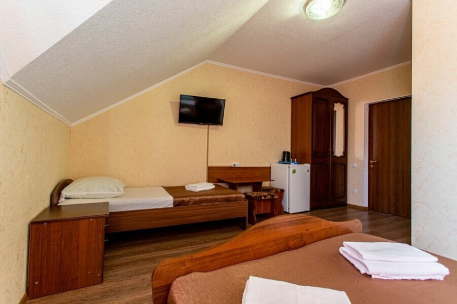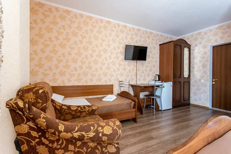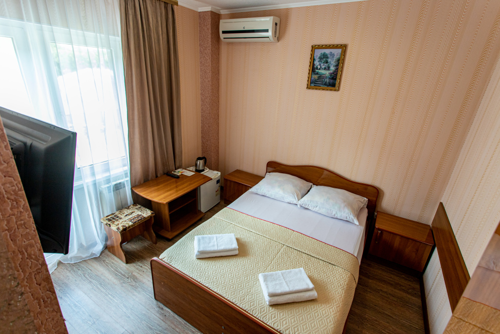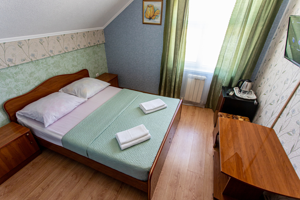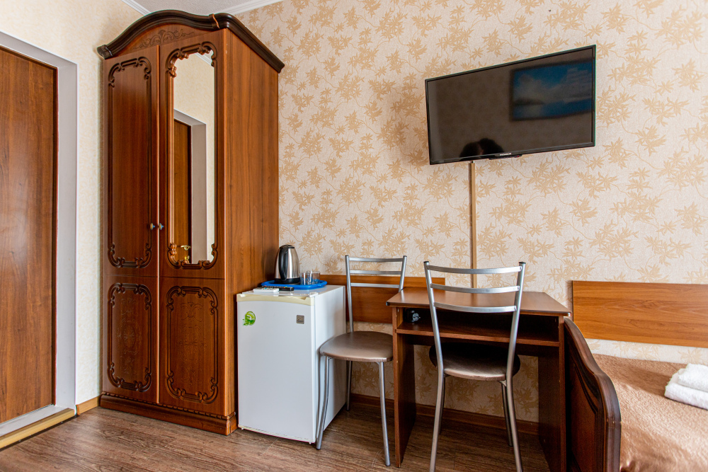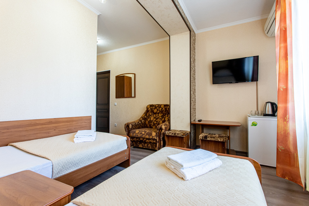 Номера в гостевом доме со всеми удобствами. Каждый оснащён: сплит‑системой; ЖК‑телевизором; холодильником; электрическим чайником; комплектом мебели; душевой кабиной и санузлом.