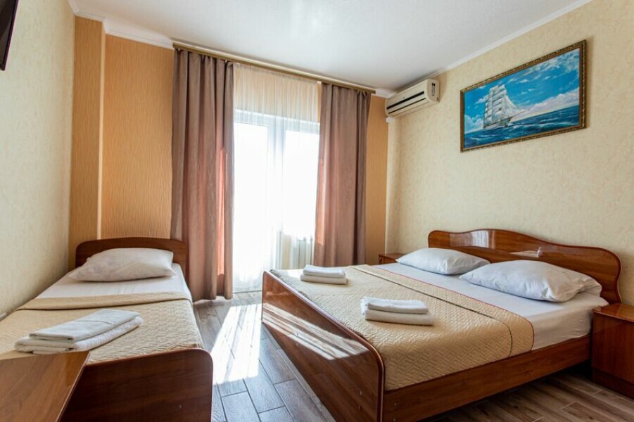 Фиеста хороший, спокойный отель. Все семейные с детками. Бассейн классный, с подогревом. Рядом душ, туалеты, мангальная зона, шезлонги. Номера чистые с белыми полотенцами. Кондиционер, санузел,телевизор, холодильник, все есть. Расположение в центре, рядом магниты, пятёрочка, палатки, пиццерия До до пицца. До моря не долго. Хозяева приличные, спокойные. Спасибо!