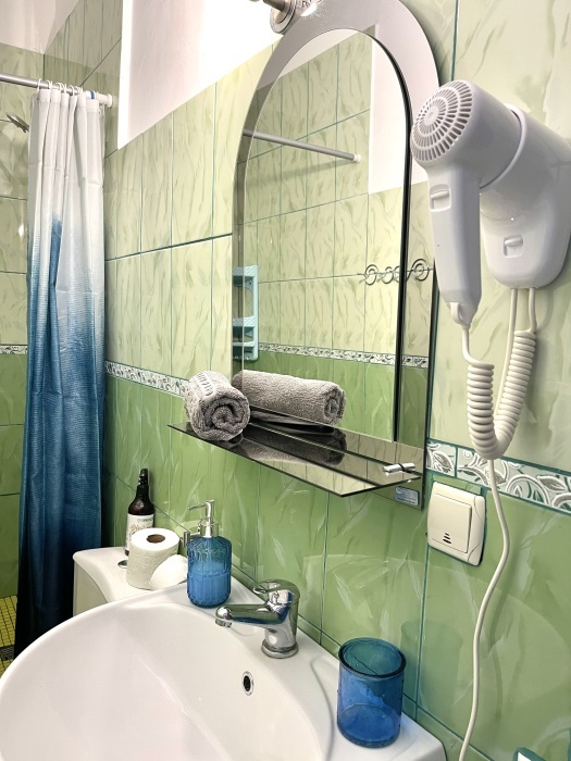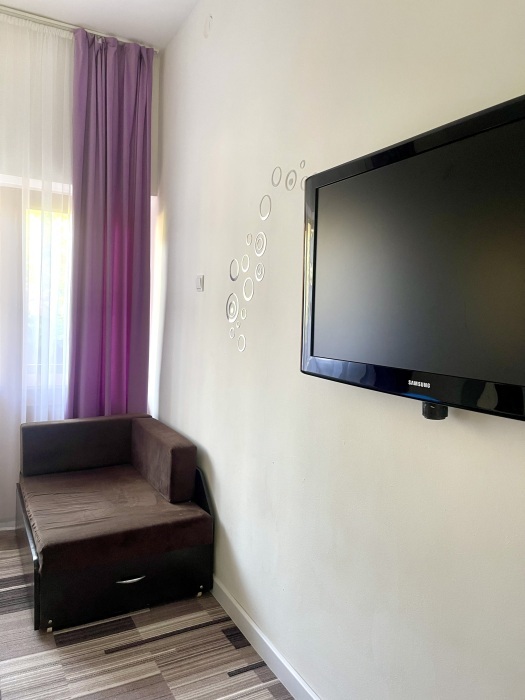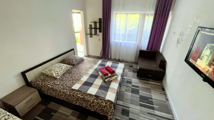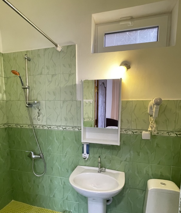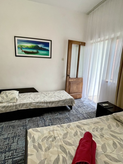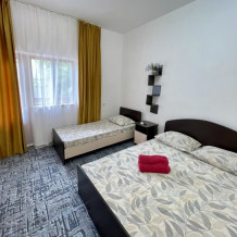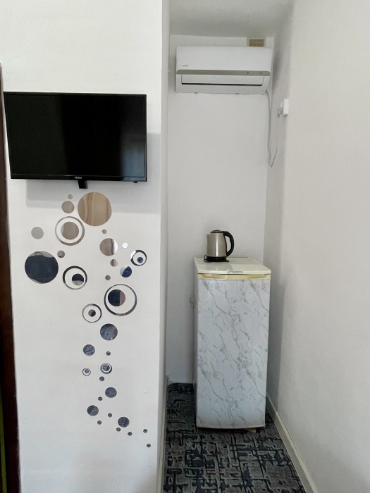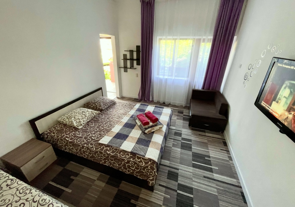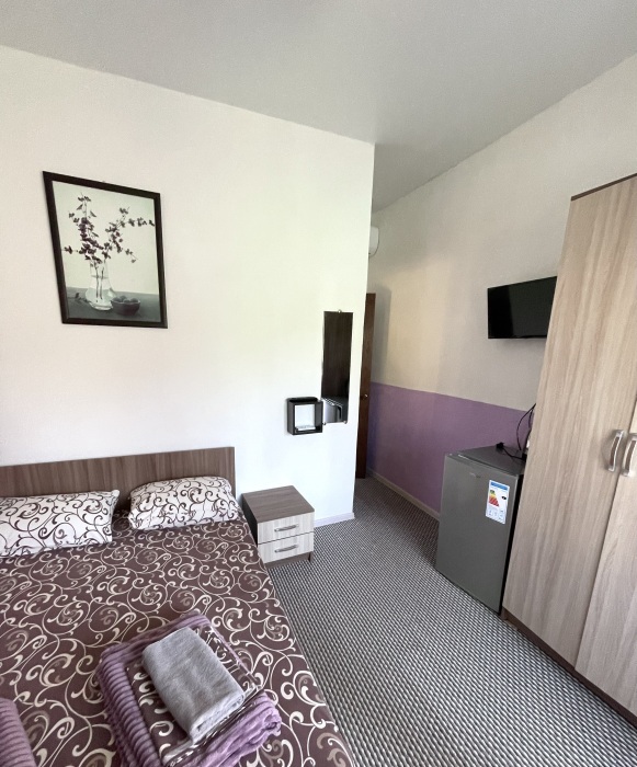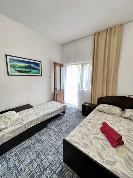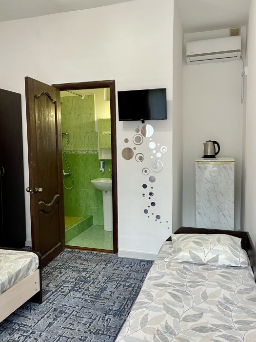 Крыло под ключ для большой семьи или двух пар. Это отдельный вход и две отдельные комнаты соединены коридором. В каждой комнате двухспальная кровать, односпальная, тв, сплит-система, балкон. Удобства на эти 2 комнаты: душ, туалет, холодильник, фен, электрочайник, и вай-фай.