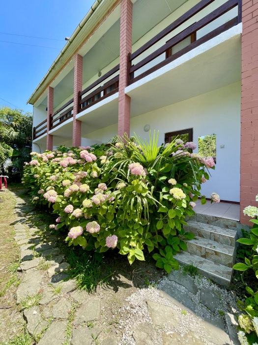 Гостевой дом SochiHome находится в тенистом, цветущем саду, где мы рады предоставить Вам летнюю кухню, мангал, детский уголок-качели, каркасный бассейн с шезлонгами, стиральную машину. Гарантируем много пальм, семейные заплывы в бассейне и тишину, что важно в самый разгар сезона. Под окнами нет шашлычных, дискотек с музыкой до утра, крепкий, здоровый сон, мы вам гарантируем.